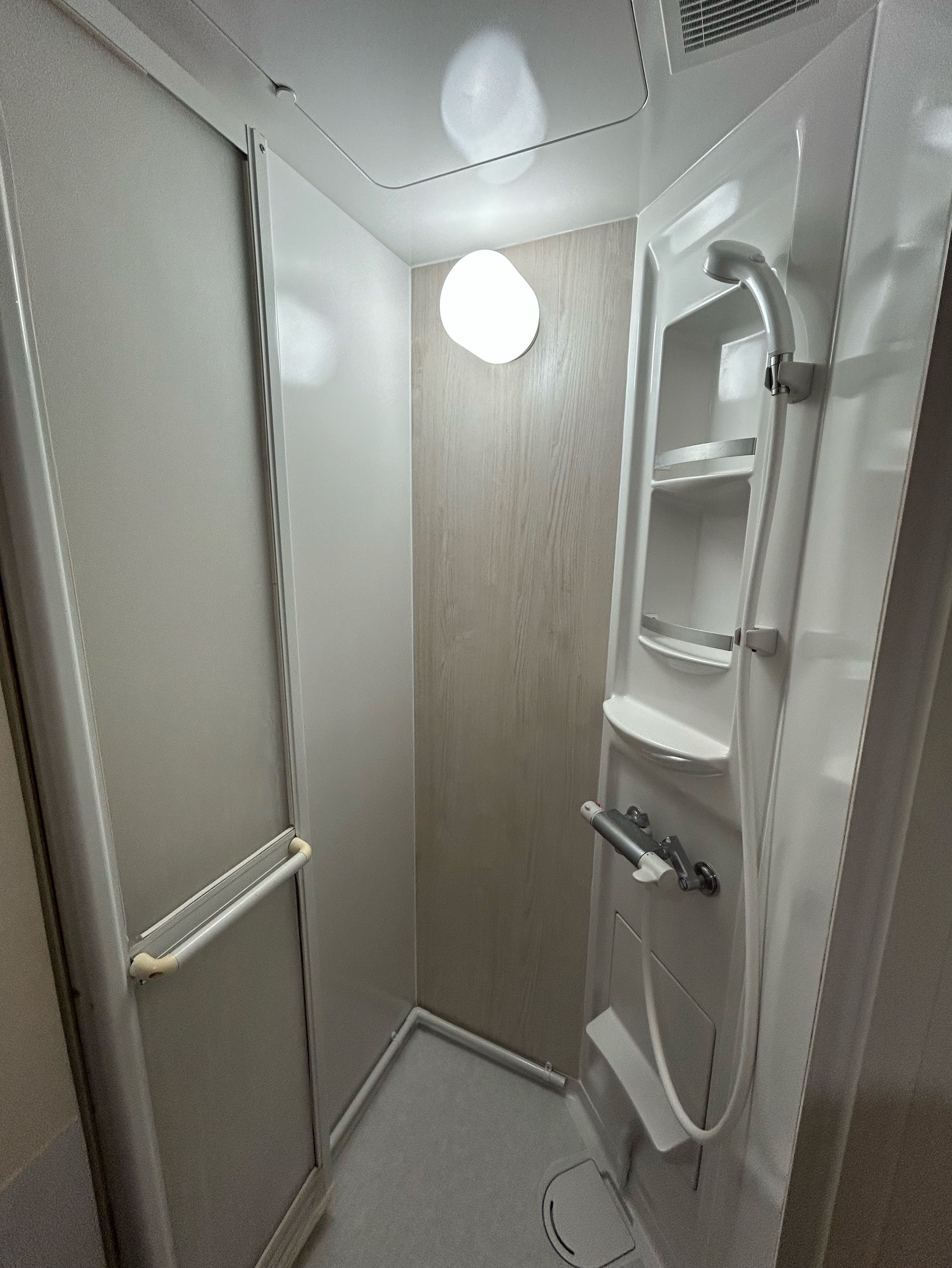 今回はシャワーブース塗装にチャレンジ一面 アクセントシートにして床マット運動 残り面 全塗装新品見たいに蘇りました✌︎('ω')✌︎