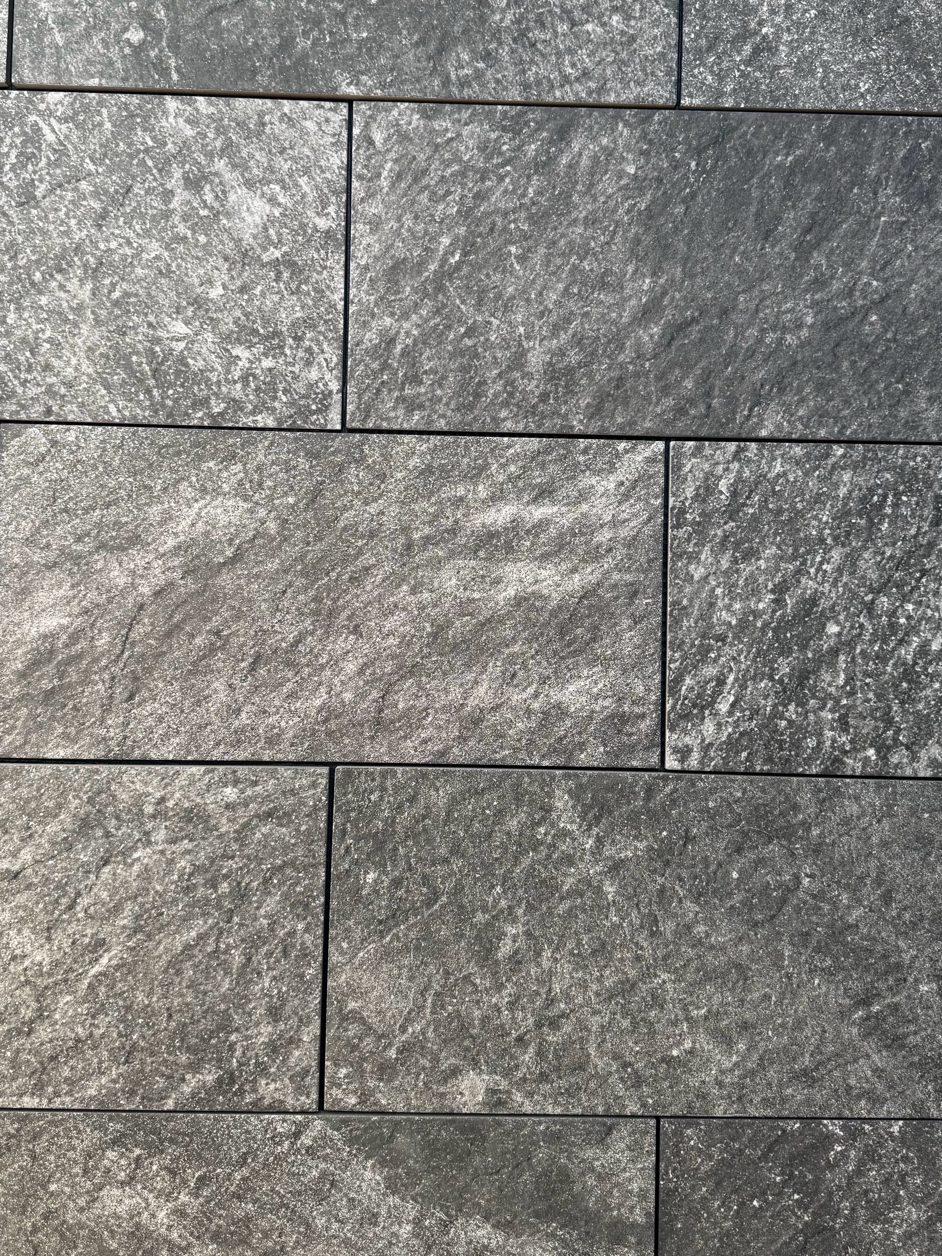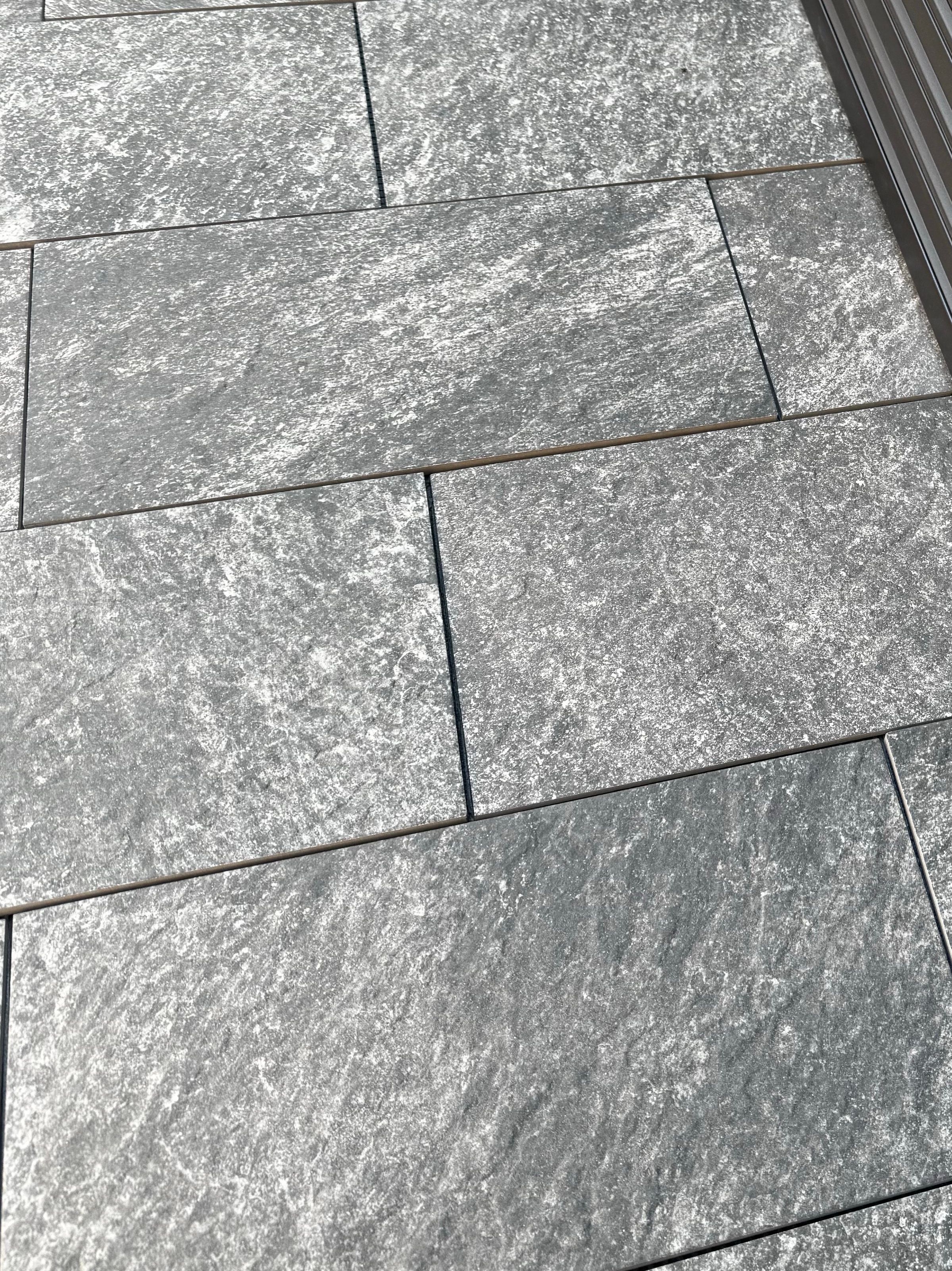 この手のタイルは頭を悩ませます!写真では分かりづらいですがタイルの暑さが10mmと6mmの2種類あって張り方も交互にではなくランダムなんです!職人泣かせなタイルです!でも達成感はありました!