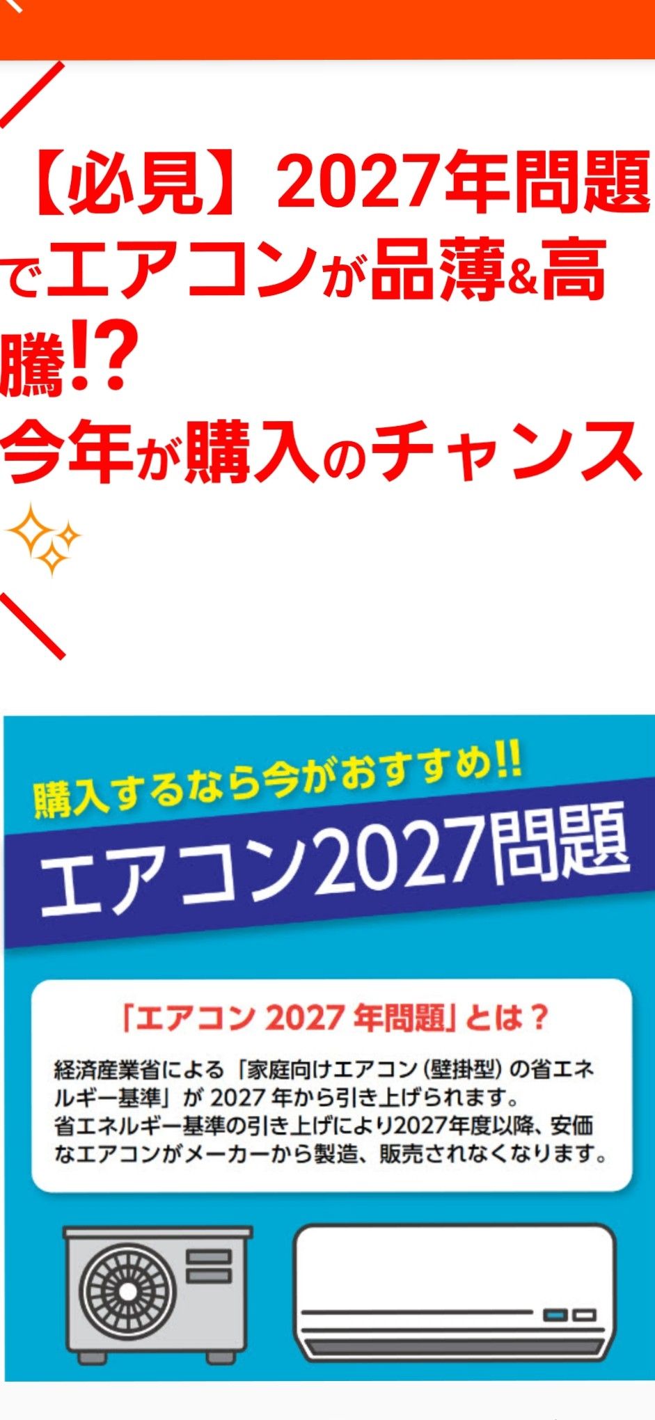 これにより各メーカーはコストの安い現行モデルの生産・販売を続けられなくなり、「手頃な価格のエアコン」が市場から消えてしまう可能性が非常に高いんです。