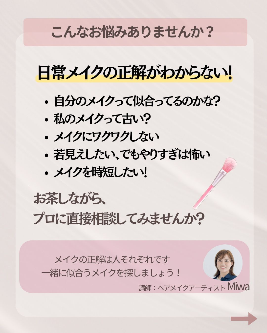 メイクのお悩みを、メイクアーティストに直接ご相談いただけます✨