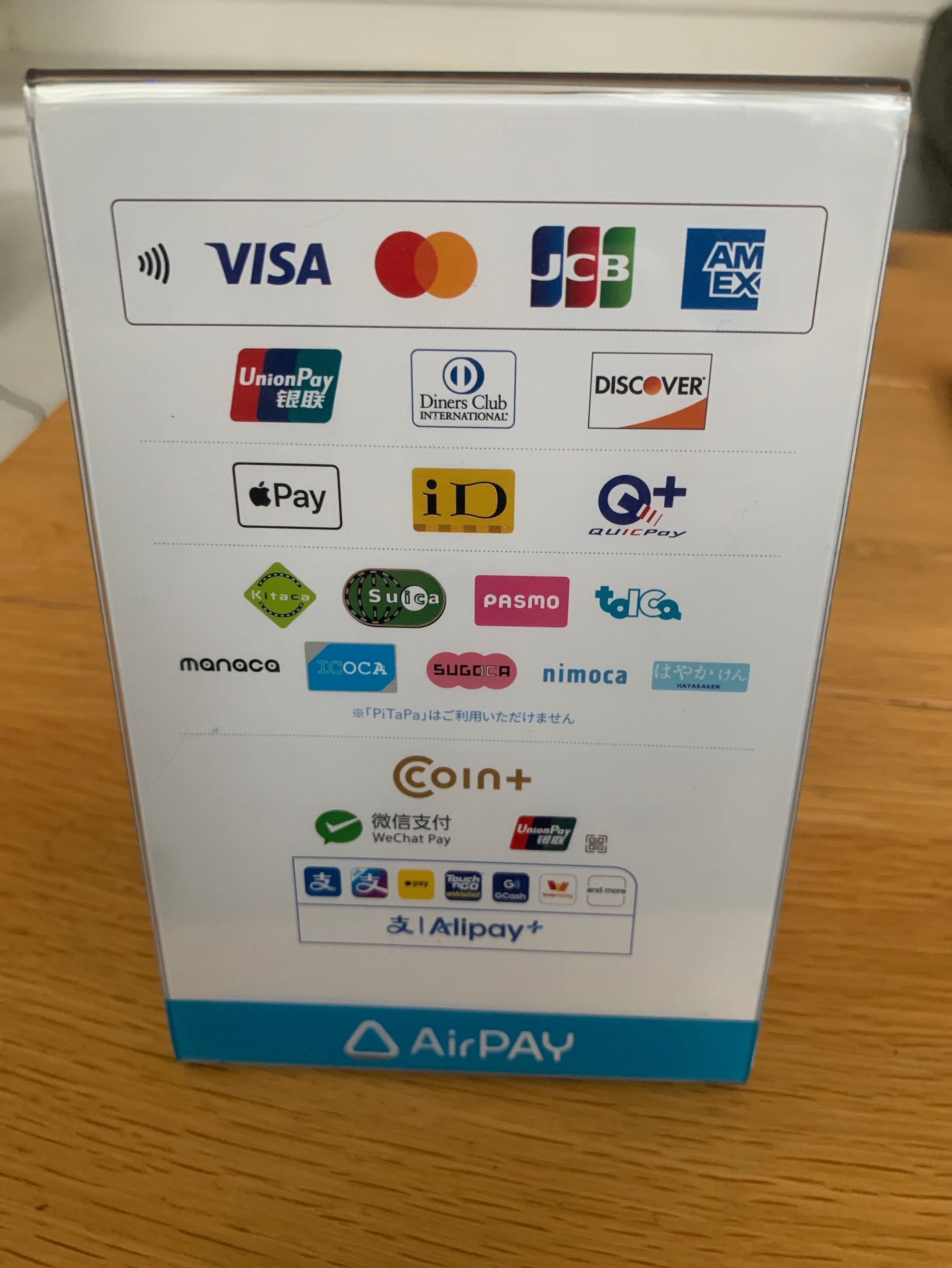 エアペイで、Visa、MasterCard、JCB、American Express、