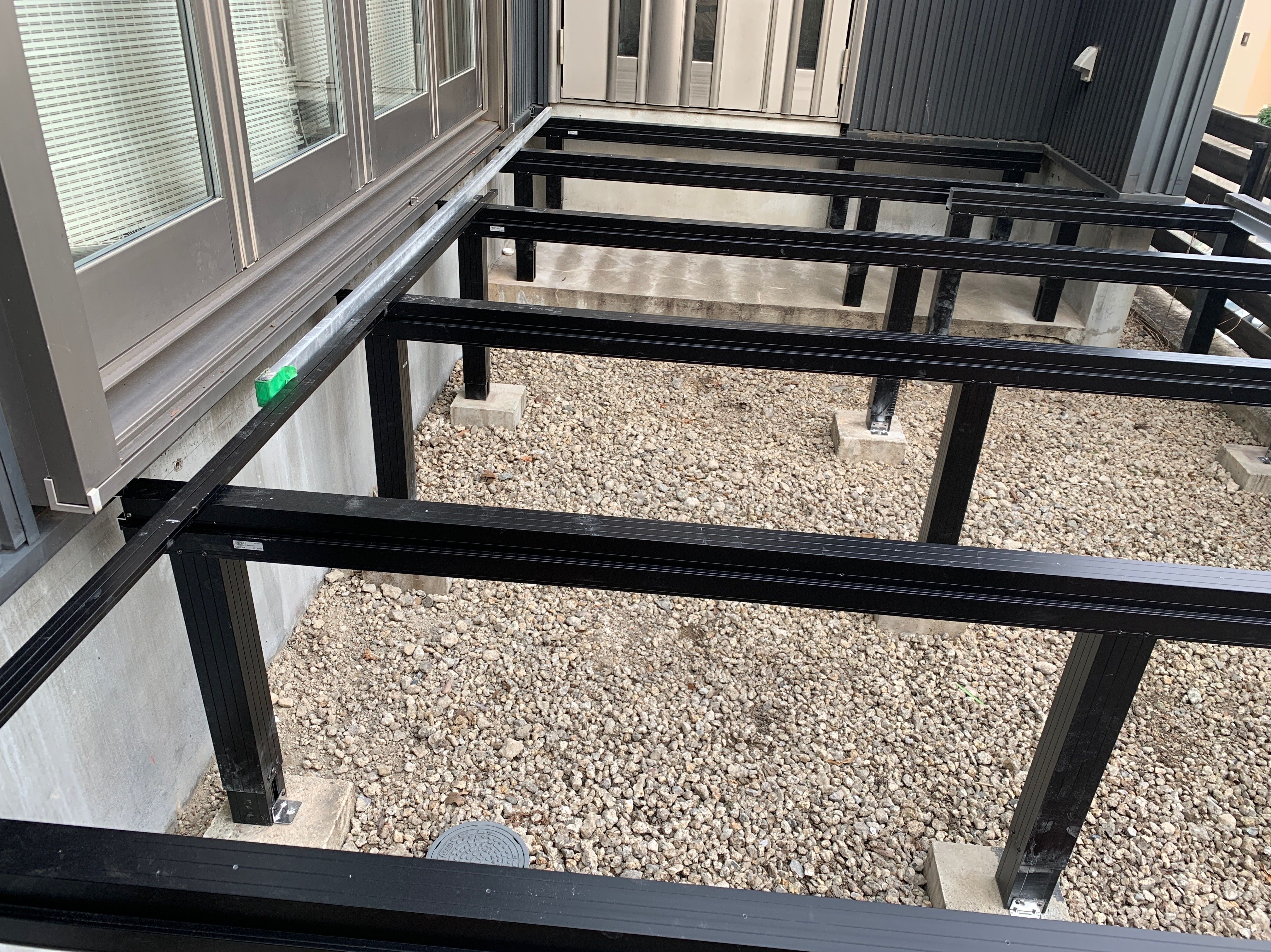デッキ工事が始まりました。雨の影響で延期してましたが、いよいよスタートです。先ずは束と土台のフレームを組んでいきます。