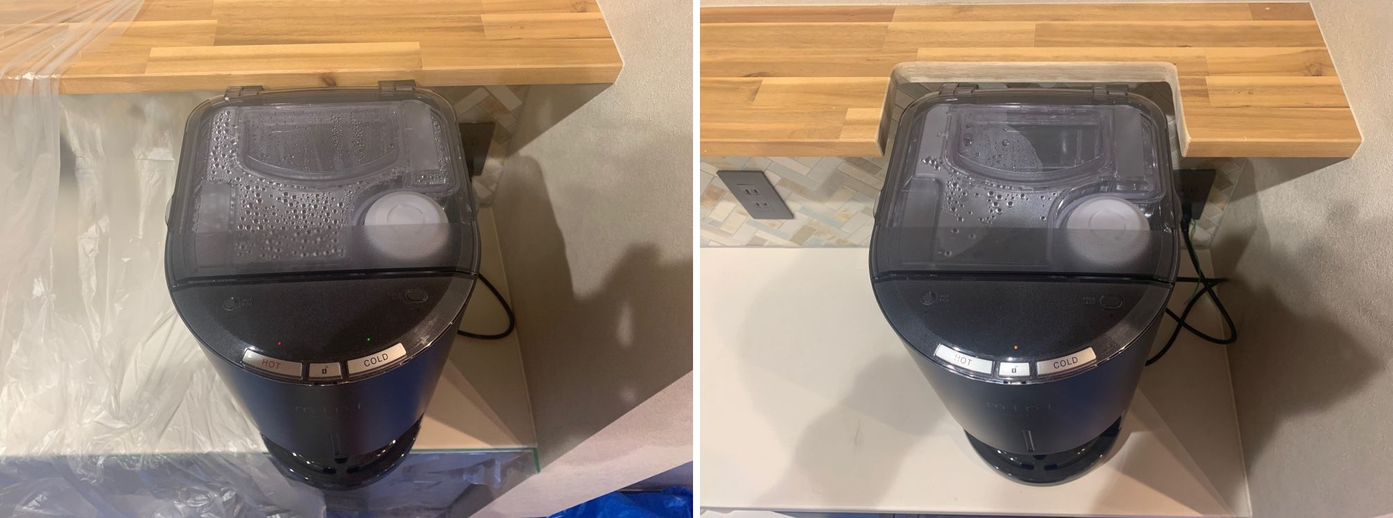 本日は、くらしのマーケットからオーダーいただきダイニングテーブルに配線孔キャップの穴開けと、棚があたってウォーターサーバーが奥に収まらないので棚板を切りかく作業をさせて頂きました。少しの加工で使い勝手が良くなります。