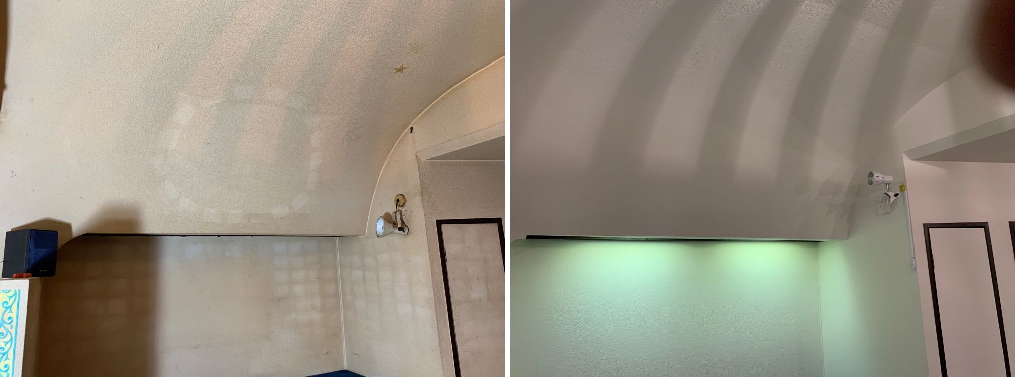 タバコのヤニ汚れで黄ばんだクロスの貼り替えを御依頼いただきました。この状態がいつまで続くのかわかりませんが、白くなって明るくなりました。