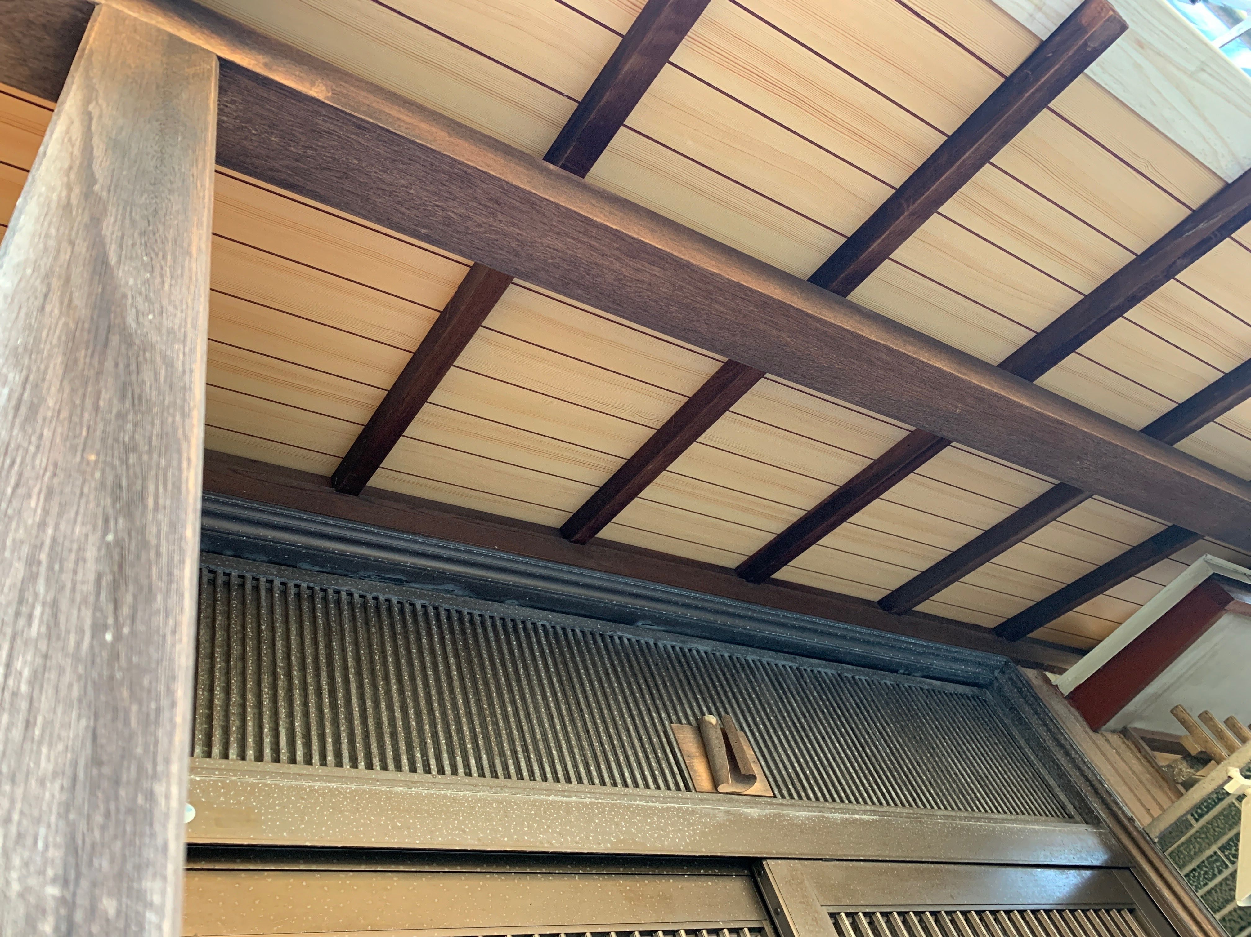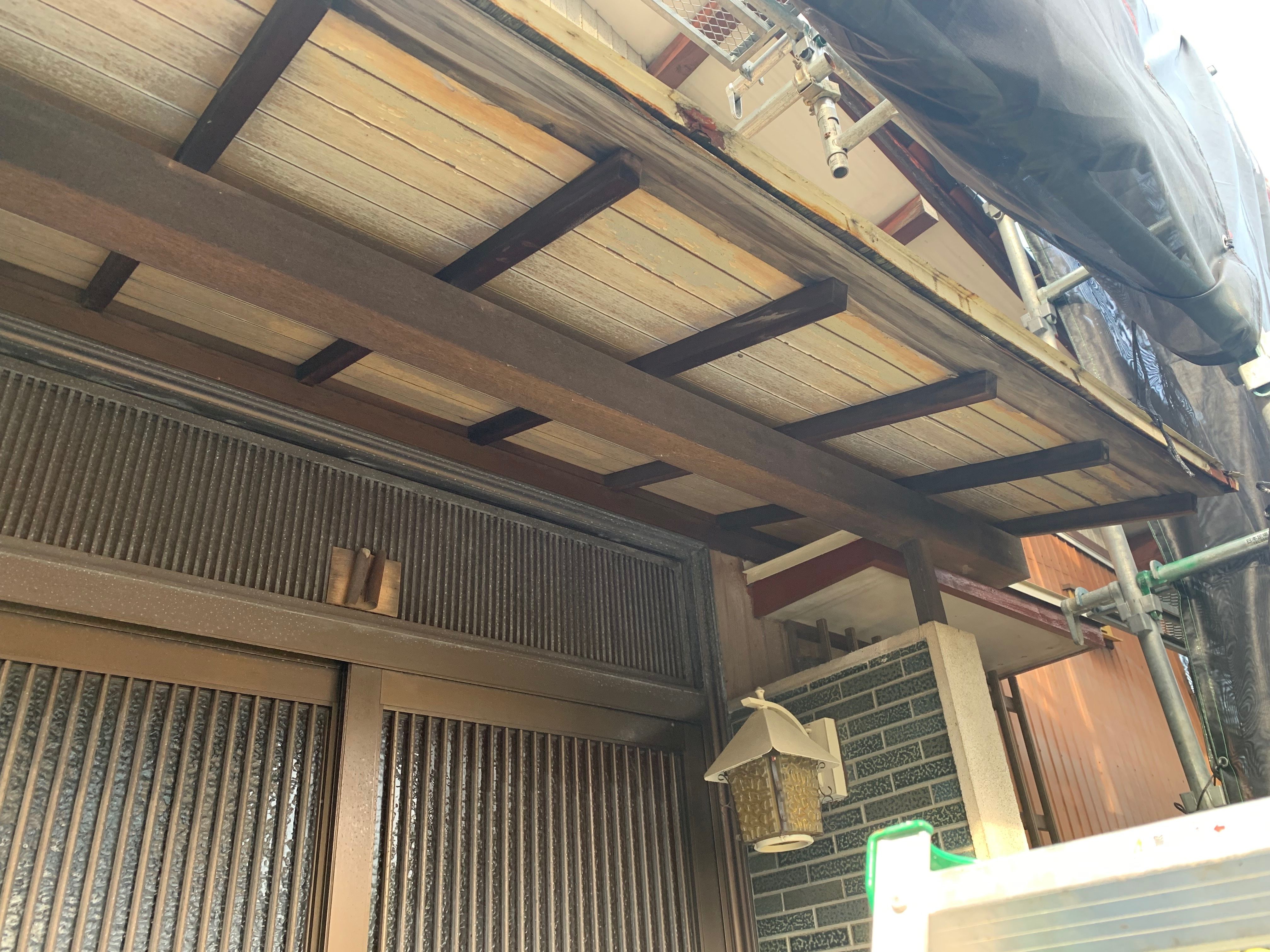 全撤去して化粧直しします。柱と垂木は後日漂白します。