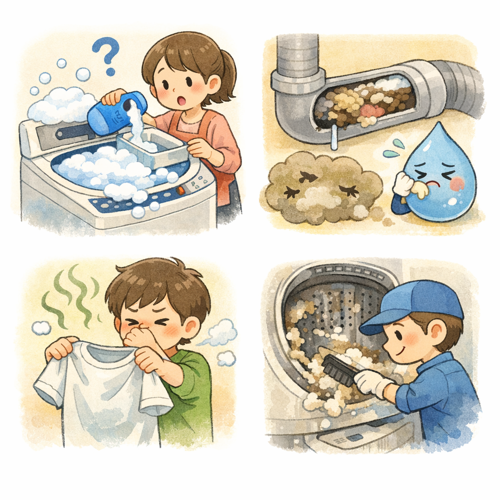 👉 **「洗剤の入れすぎが原因の詰まり」**は非常に多いです。