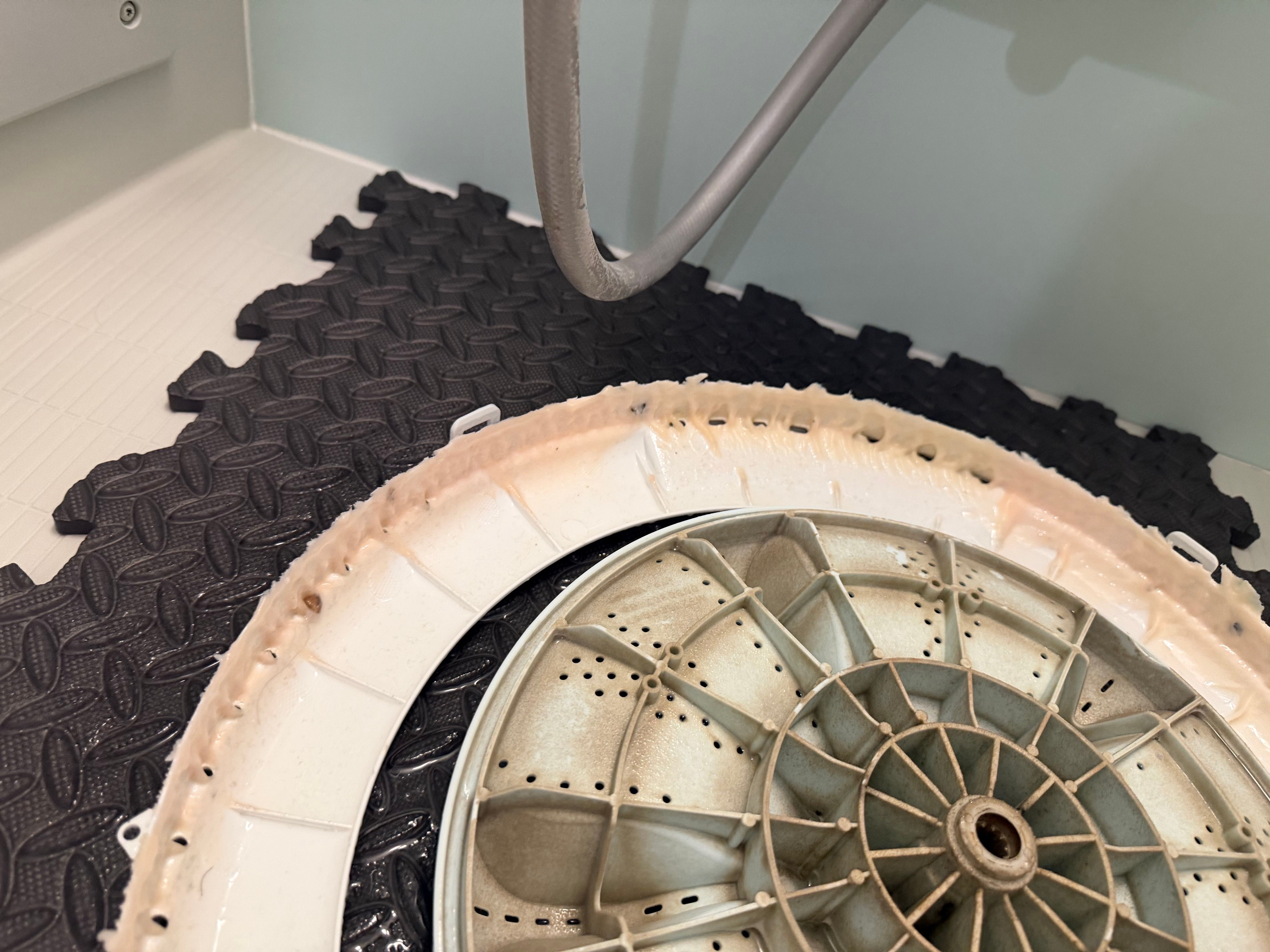 「洗濯物に黒いものが付くことがある…」とのことで、洗濯機を分解して内部を確認します。