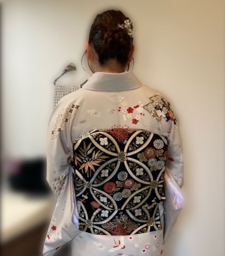 とても素敵なオフホワイトのお花柄のお着物に黒系の七宝のおめでたい帯のコーディネートがとてもお似合いでした✨✨