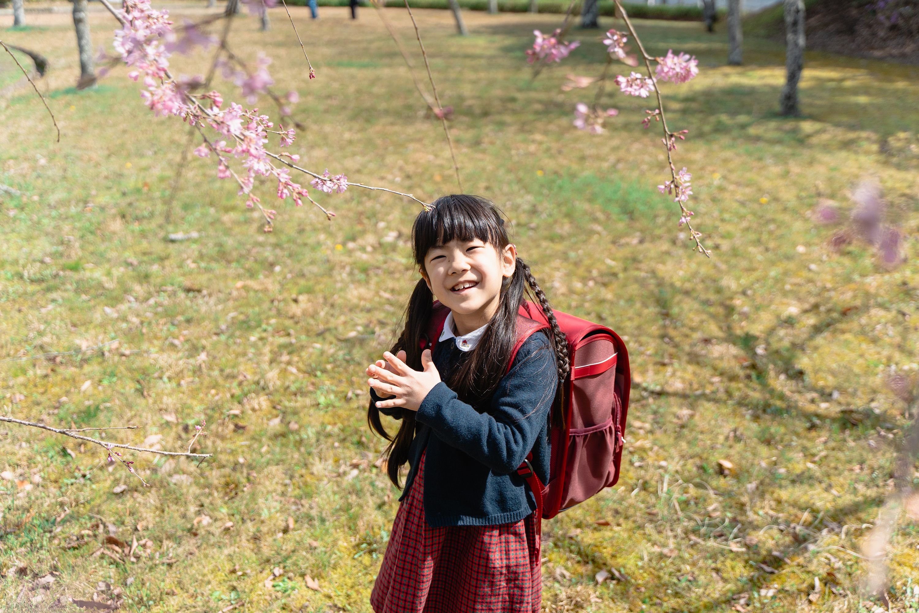 桜の開花予想からは少し外れてしまっていたのですがピカピカのランドセルを持っている姿を見て感動してしまいました。