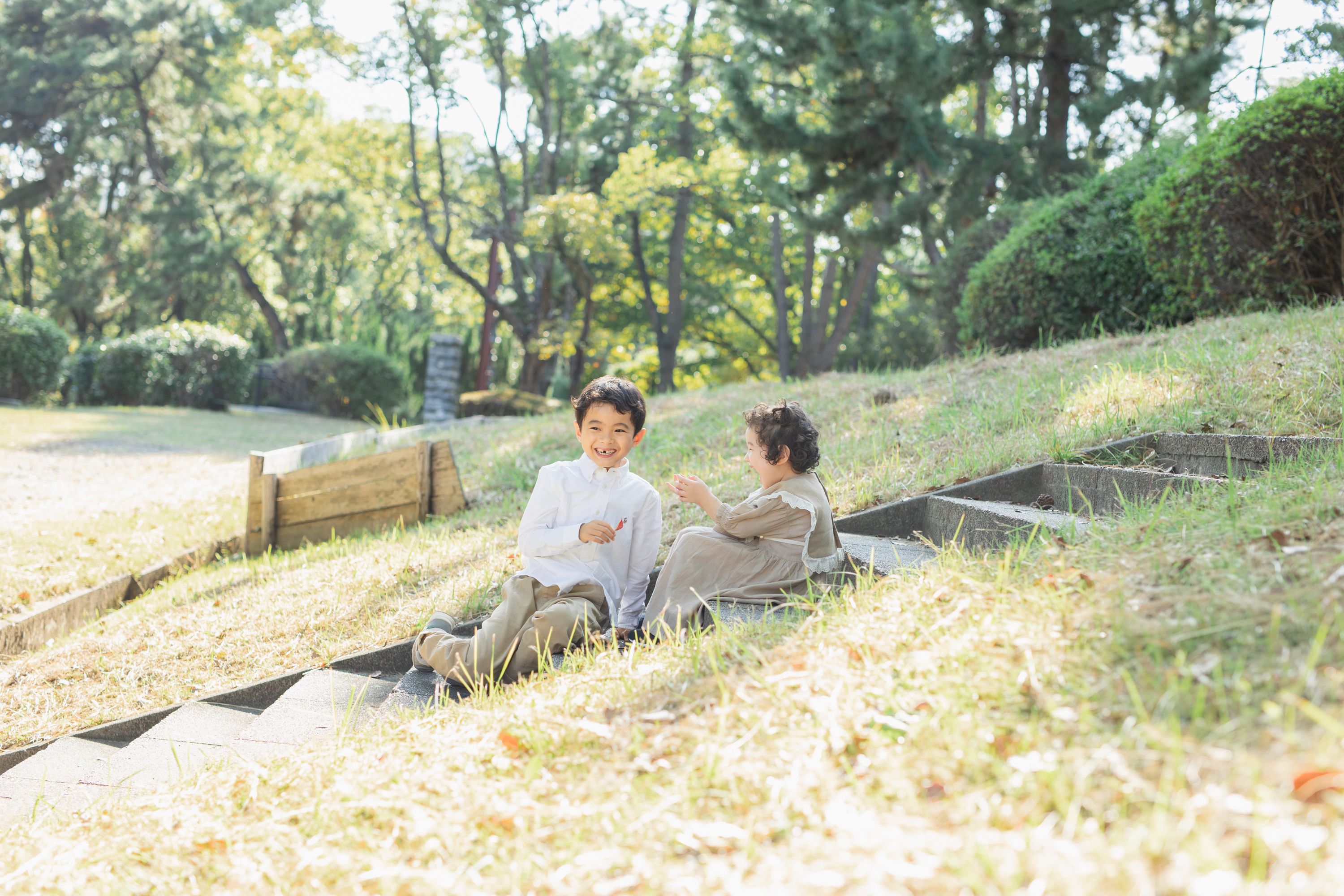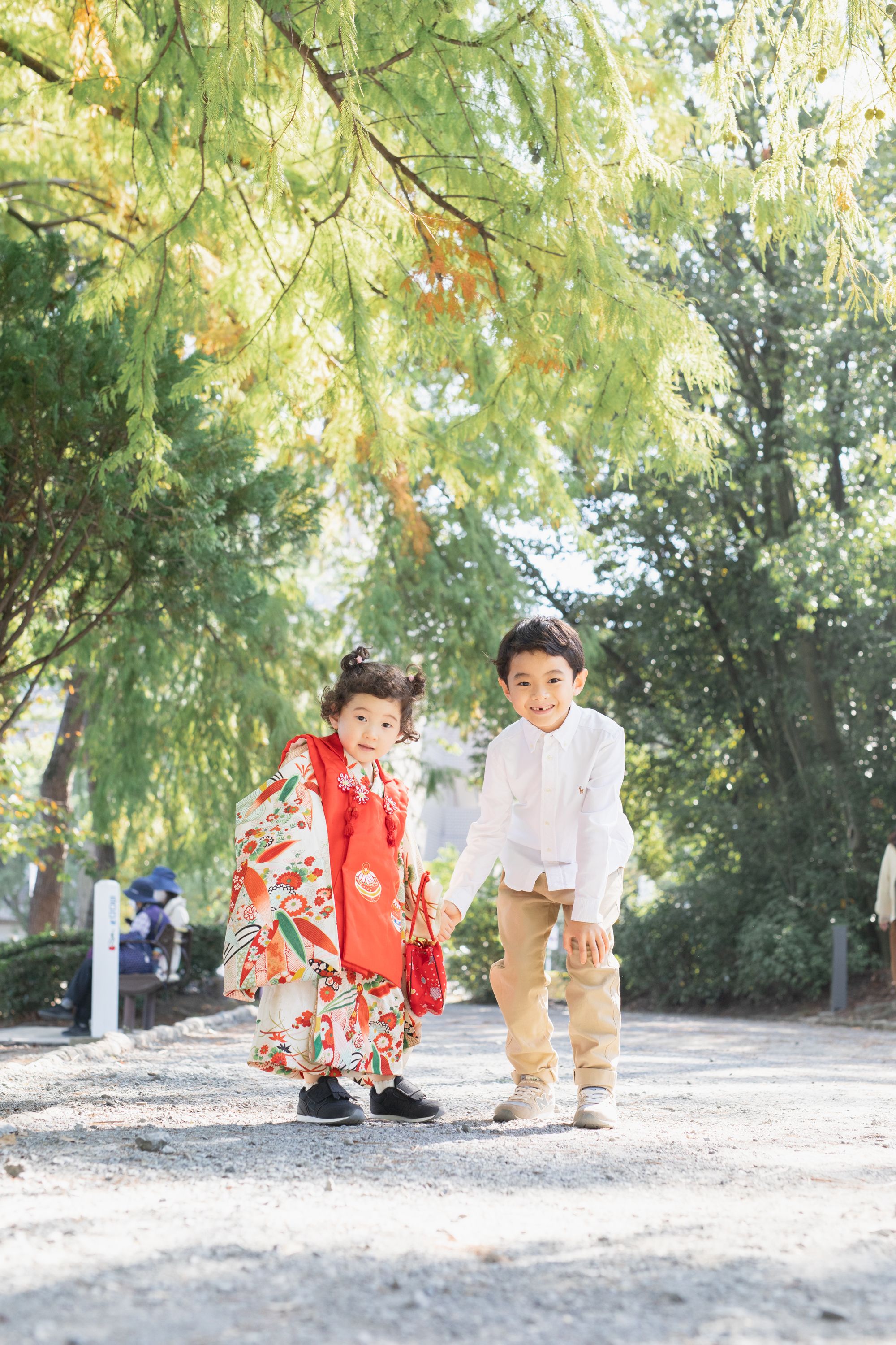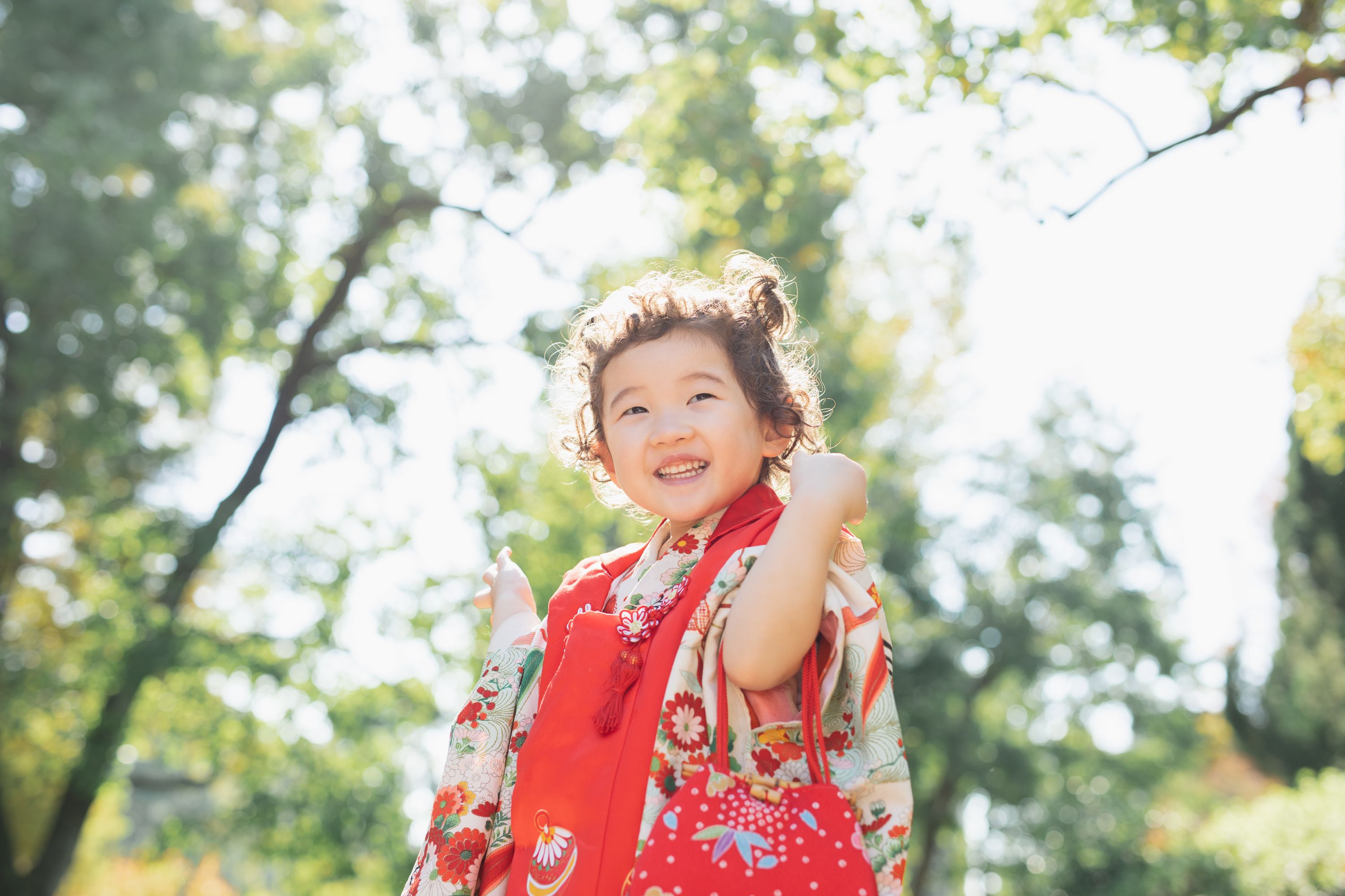 神社や寺での少し緊張した面持ちの写真ももちろん素敵なのですが、子どもらしくいつもの公園でのびのびと撮影