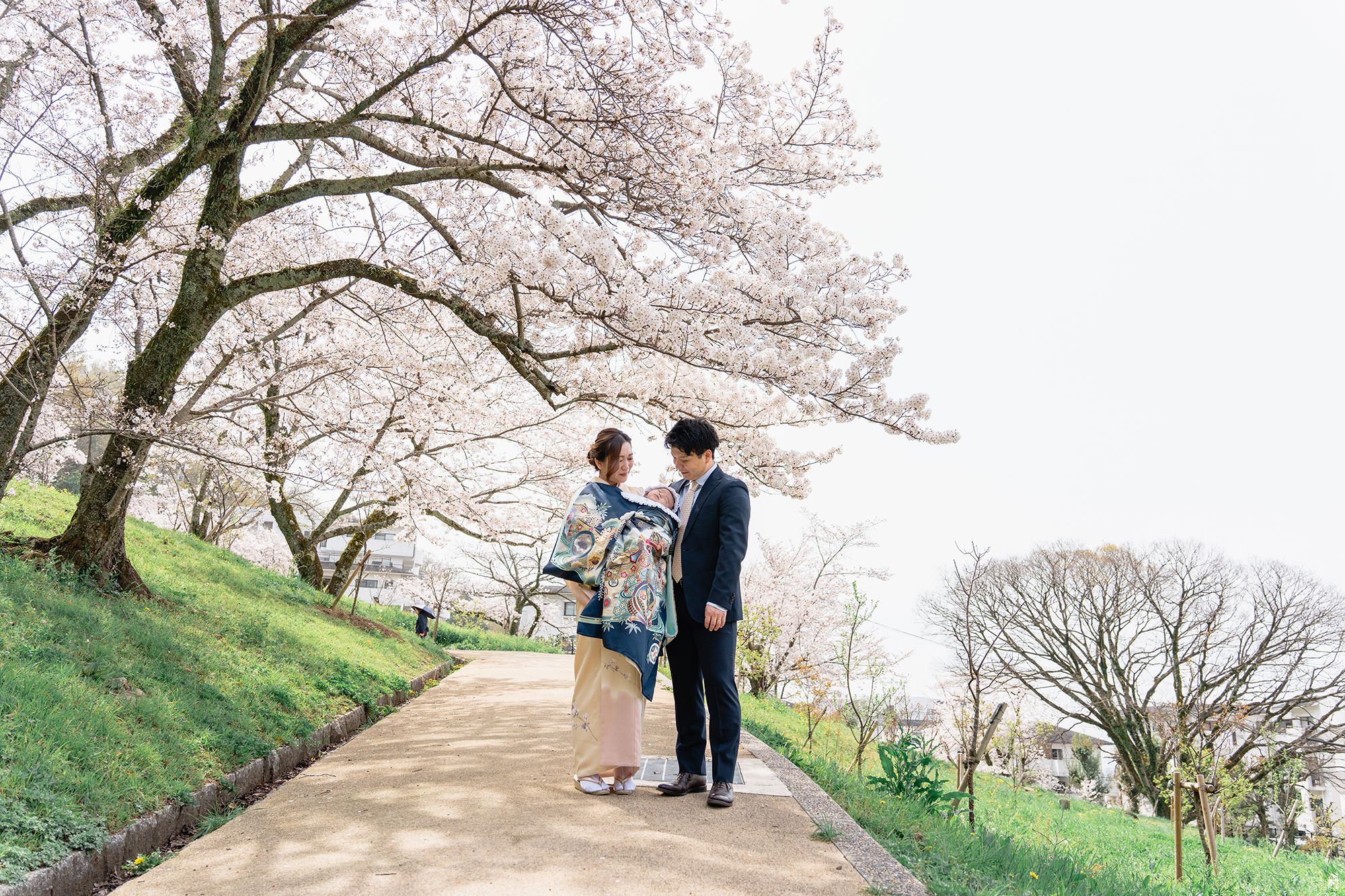 【枚岡神社でのお宮参りの撮影】春は桜と写真が撮れるとてもいいロケーションの神社です!