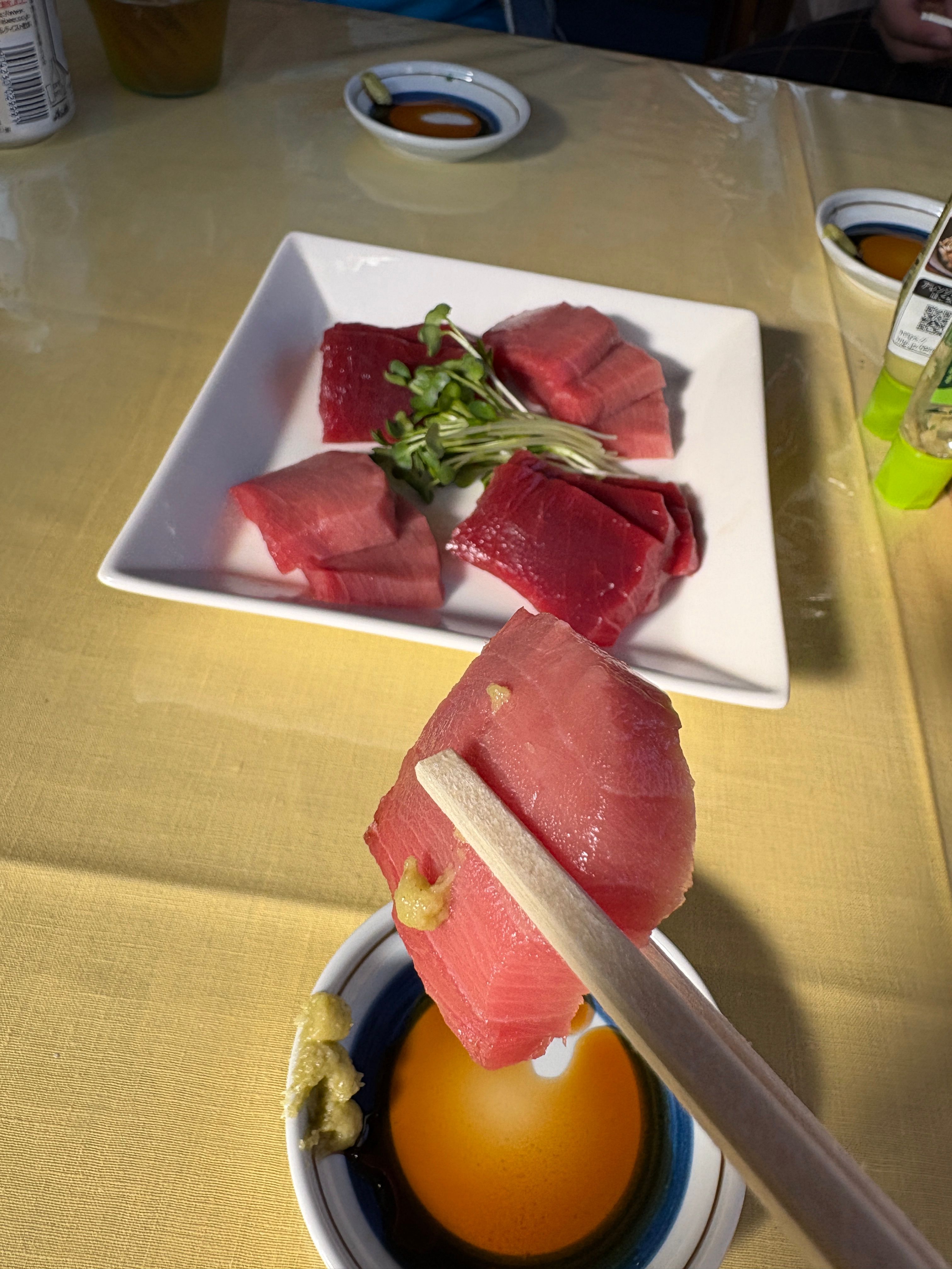 大間崎でトロを頂戴します。店の女将さん曰く、すぐに食べては美味しくなく、