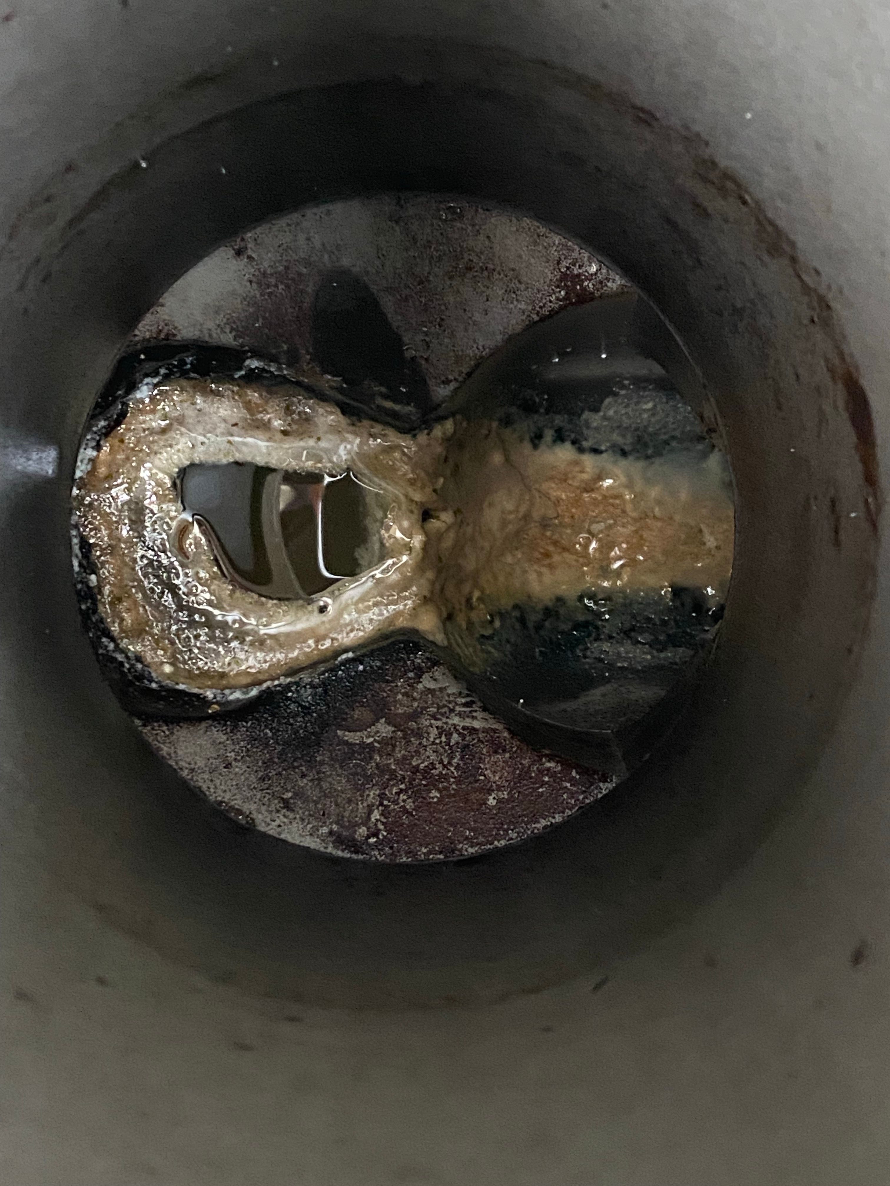 今回は屋外からの洗浄のみということで、外の汚水枡から届く範囲での洗浄となりました。ただ、どうしても限界があるため、解決しない場合(お客様視点で)は後日、屋内洗浄の追加料金のみで対応させていただきます、ということをお伝えして作業しました。