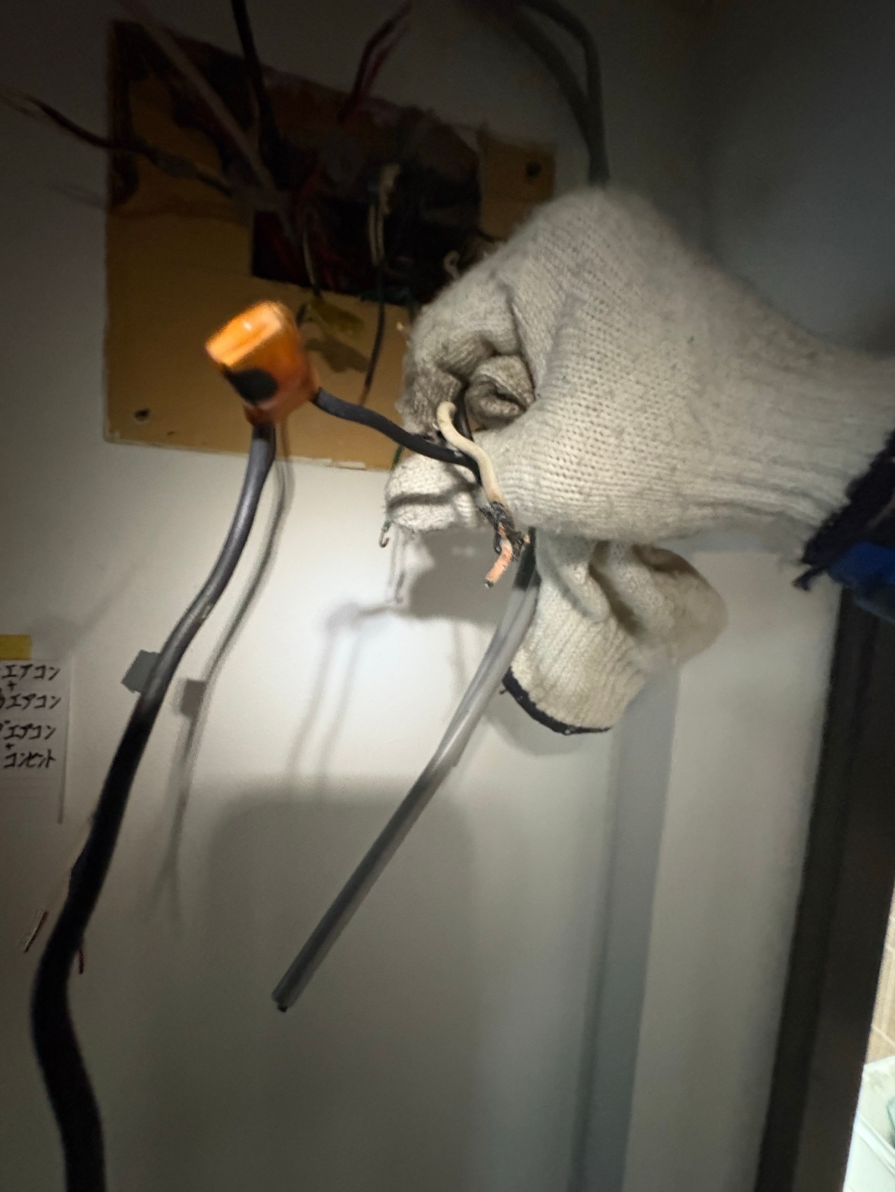 配線や施工状況を確認したところ、エアコン専用回路ではなく、他の機器と共用している状態でした。そのため電流容量が不足し、過負荷による発熱・焦げが発生した可能性が高いと判断しました。