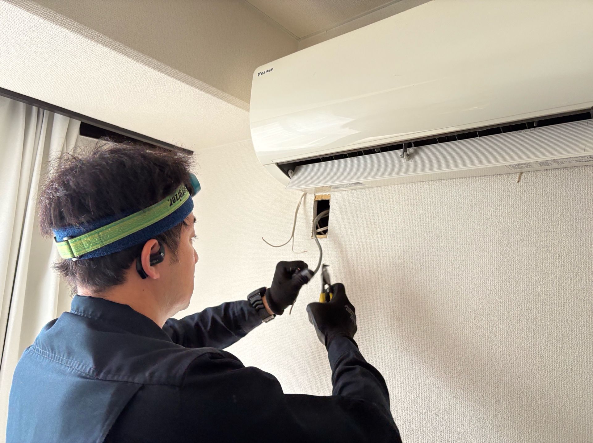 安全性を第一に、エアコン本体の交換とあわせて、新たにエアコン専用回路を分電盤から引き込み。これにより、十分な電流容量を確保し、今後も安心してご使用いただける状態になりました。