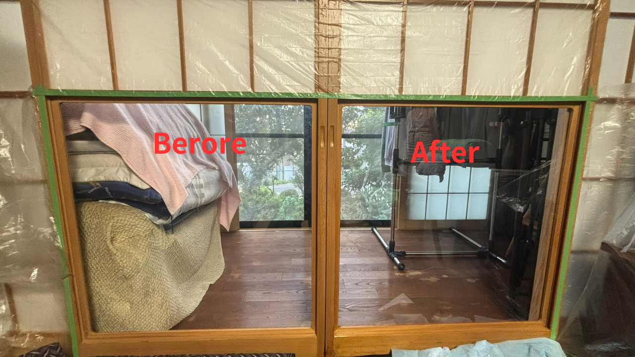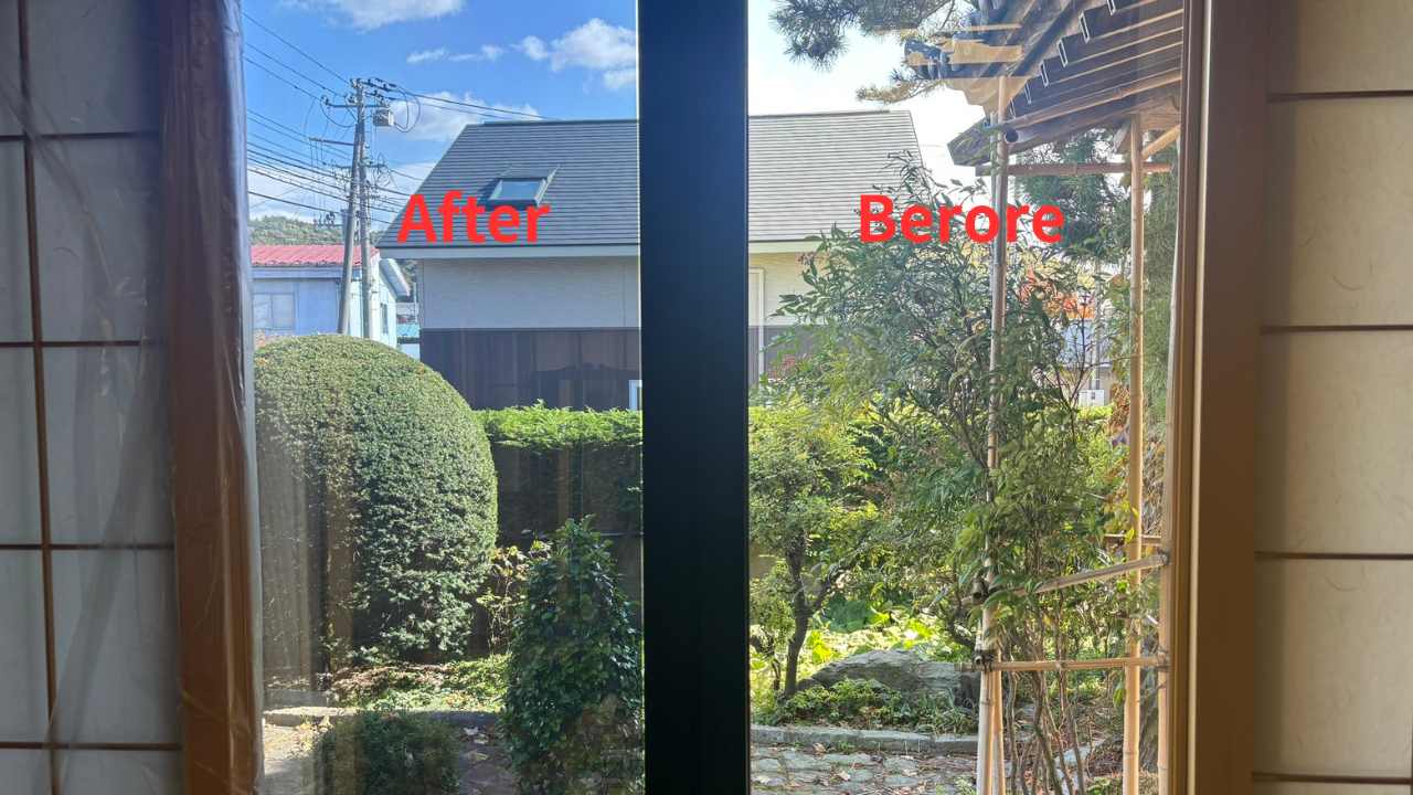 盛岡市内の一軒家にてリビング窓にミラーフィルム施工をさせて頂きました。お客様が玄関につく前に室内が見えないか心配しているとのことでいつもサッシを閉めているか少しだけ開けており、もっと部屋を明るくしたいとのご要望と、高齢の方も同居されており室内での転倒によるガラス破損、割れたガラスでのケガなど二次被害防止のために和室の雪見障子に飛散防止フィルムを施工させて頂きました。特に雪見障子など室内のガラスが薄いことが多いので飛散防止フィルムを貼ればガラス面の厚さがより厚くなりガラスの見た目も少々レベルアップ、ミラーもですが外の景色も気持ちアガるとご感想を頂けました。
