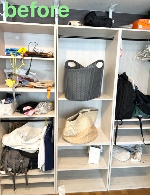 子供が、おもちゃをリビングに持ってきて遊んだり、赤ちゃんのお世話のものなどが増えてしまい、収納棚を置いたけれどうまく活用できていないようでした。