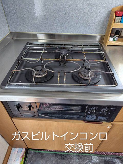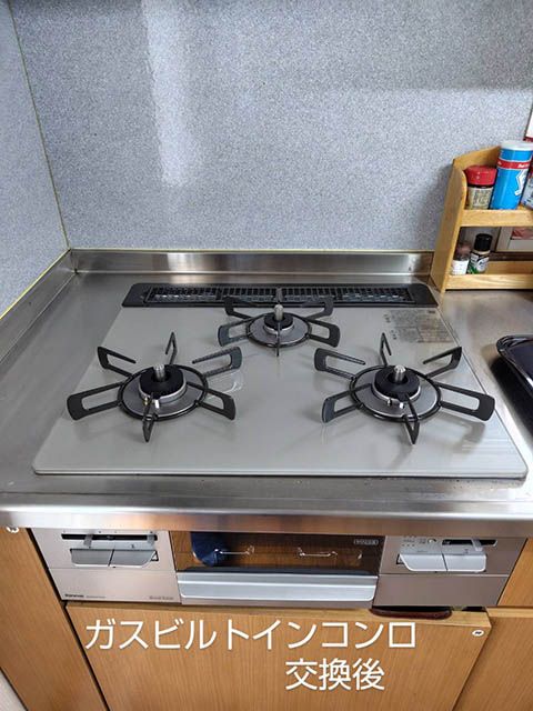 経年劣化したビルトインコンロの交換工事をしましま。新しいビルトインコンロは自動炊飯機能が付いているので、スイッチを押すだけでコンロの上でご飯が炊けるようになりました。ビルトインコンロの交換をお考えの方は、ぜひ一度山田燃料までご