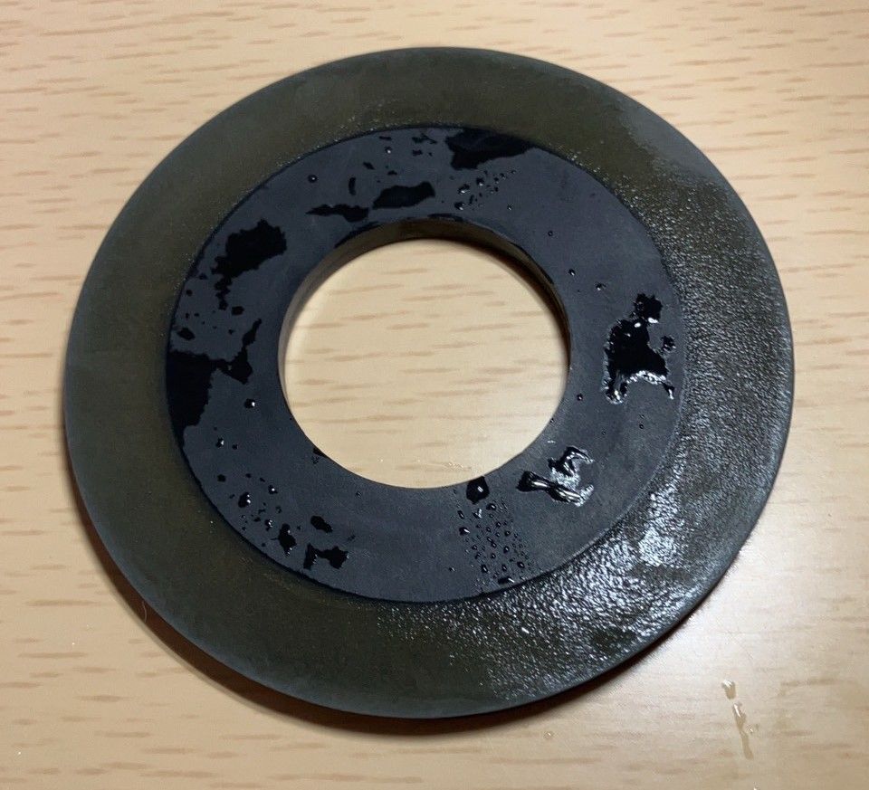 周りの部分が変色しているのが分かります。本来の色は、中心部分の黒い色と同じです。