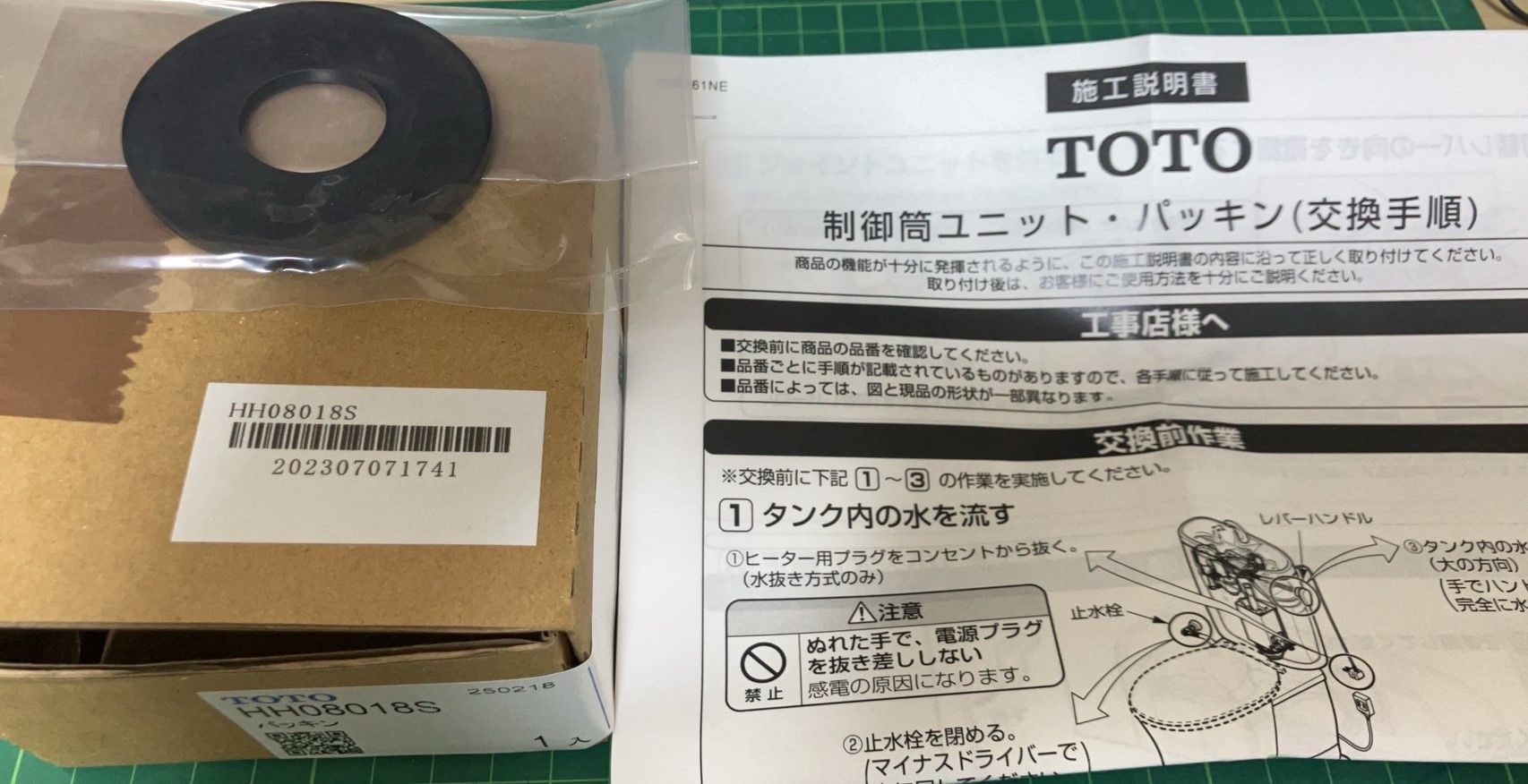 それから、同じように1階と2階に同じトイレがあるようなら同時にパッキンを交換することをオススメします。部品自体は1年前に¥1,200くらいで今回は¥1,500でした。