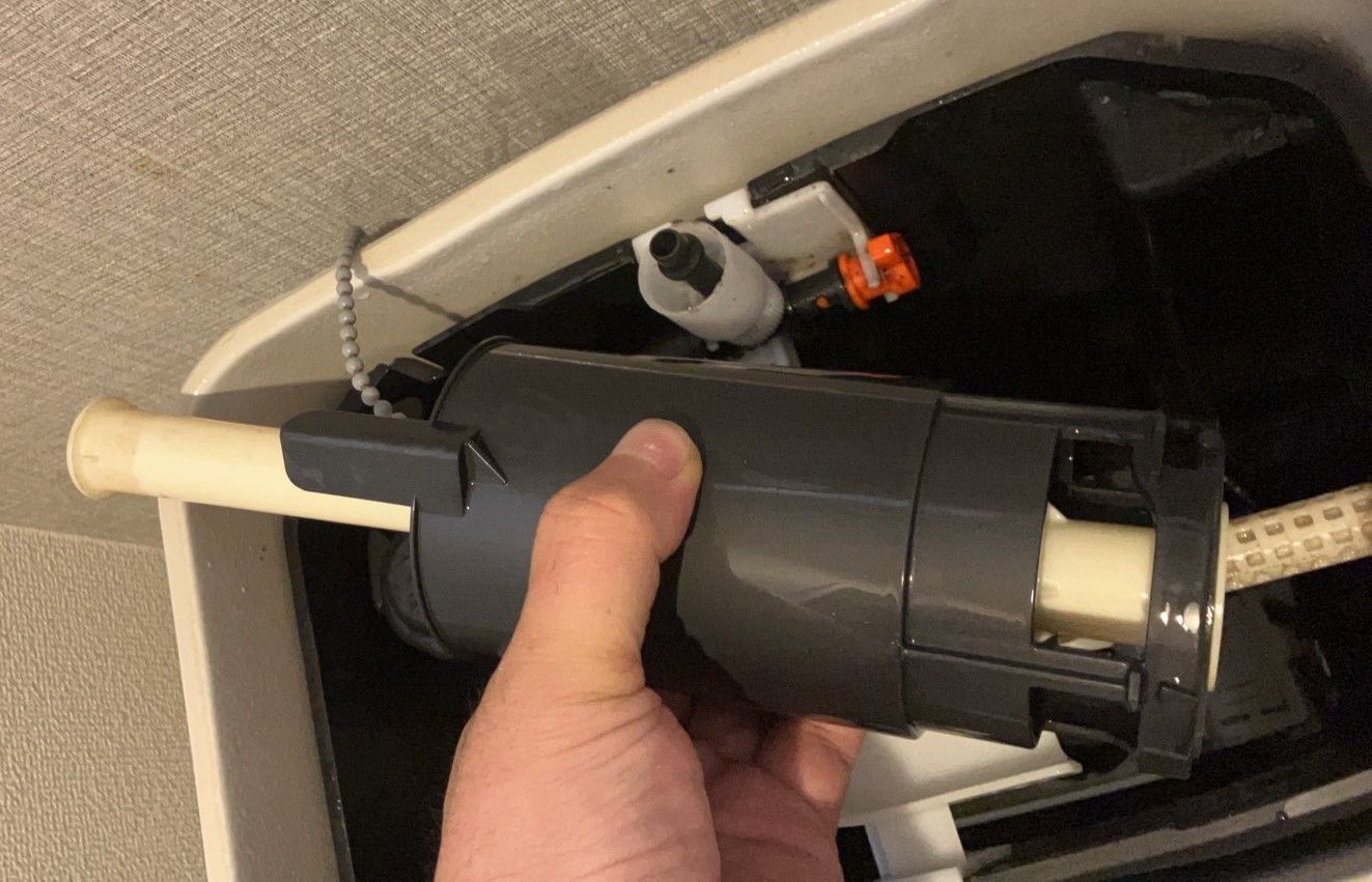 制御筒を外したところ。慣れるとここまで5分程度です。制御筒を戻す際に、しっかり固定しないと便器に水が止まらずに出続けるので注意しましょう