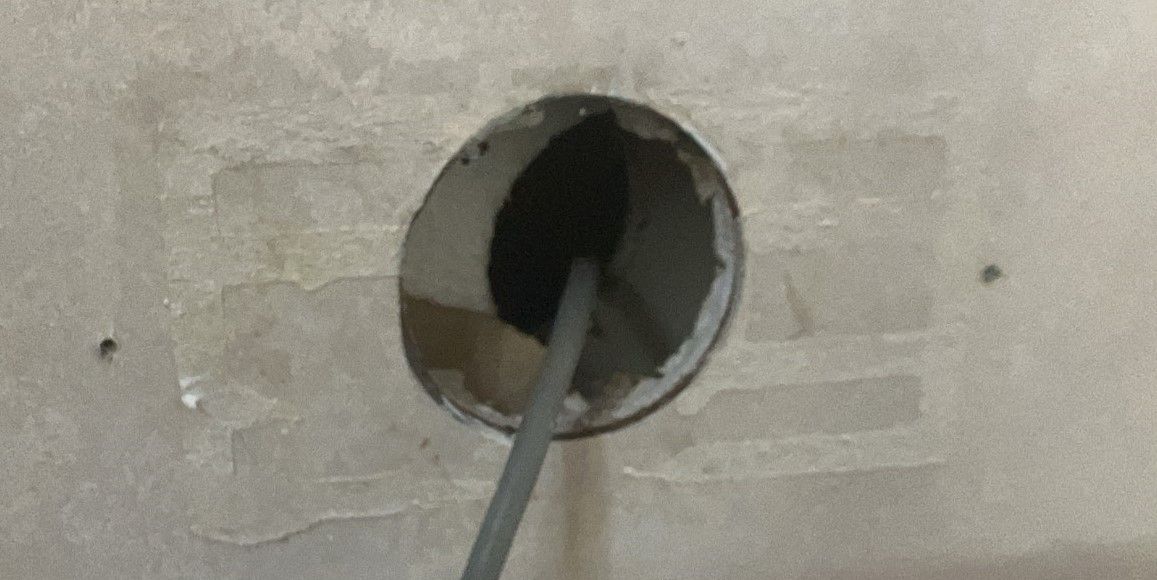 リンナイ220Vの風呂リモコンが取り付けしてありましたが、80mm程度の大きな穴が開いてました。通常は30mm~40mm程度ですので倍くらいの大きな穴です。