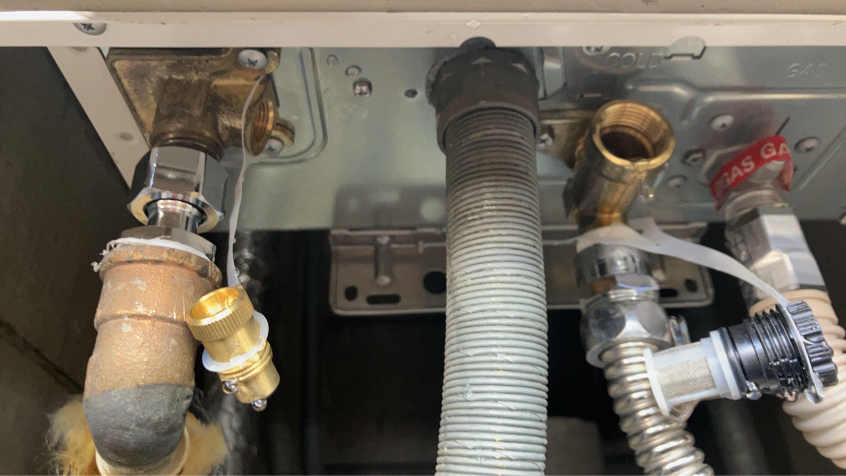 給水、給湯、ガスは20Aなので口径変更部材も必要です。リモコン線は7芯なので、そのうちの2本を使用します。また、今回は湯管が20A銅管直結でしたので外す際に少し時間が掛かりましたし、再接続も腕の見せ所ですね。
