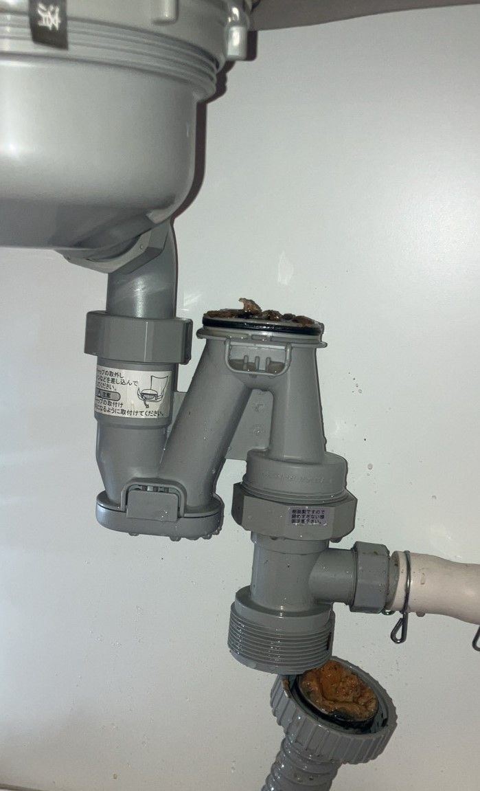 トラップの掃除口は一度も開けたことが無かったので7年間の汚れが溜まってました。数年に1度は掃除しないとダメですね。(見て見ぬふりをしていました)