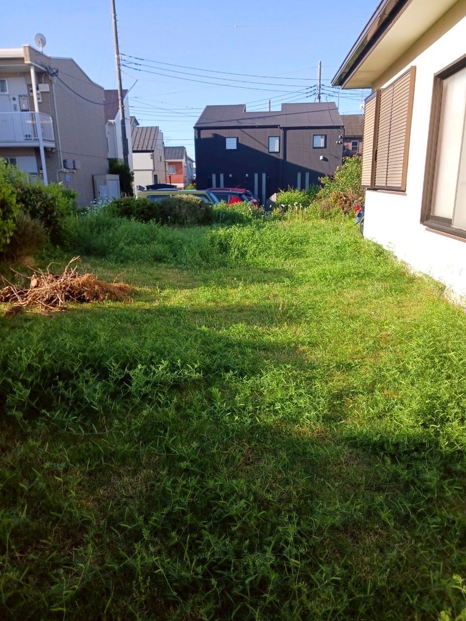 神奈川県逗子市にて芝刈り前の雑草取りを行いました