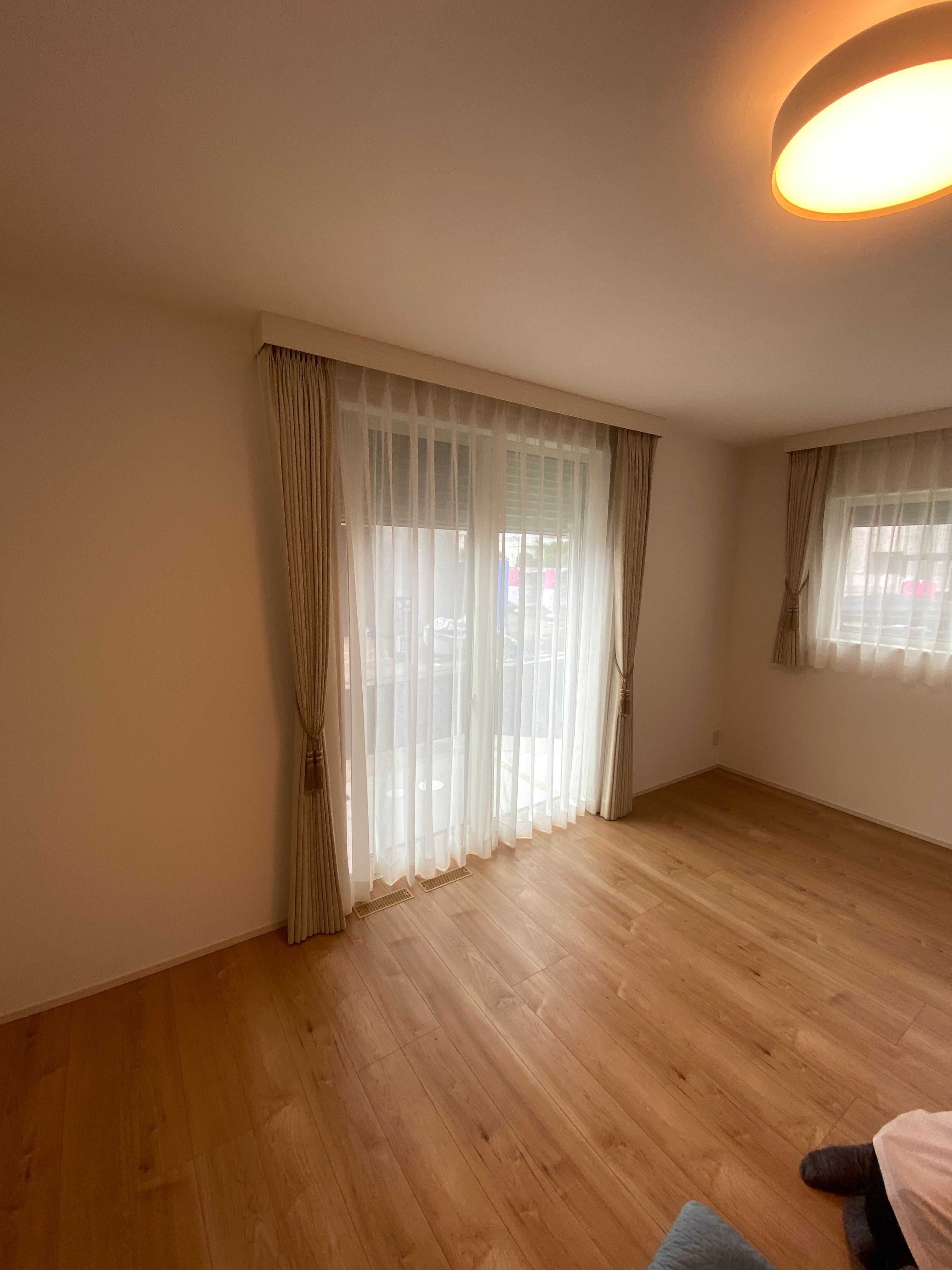 上質な木目のカーテンボックスが空間にマッチして
