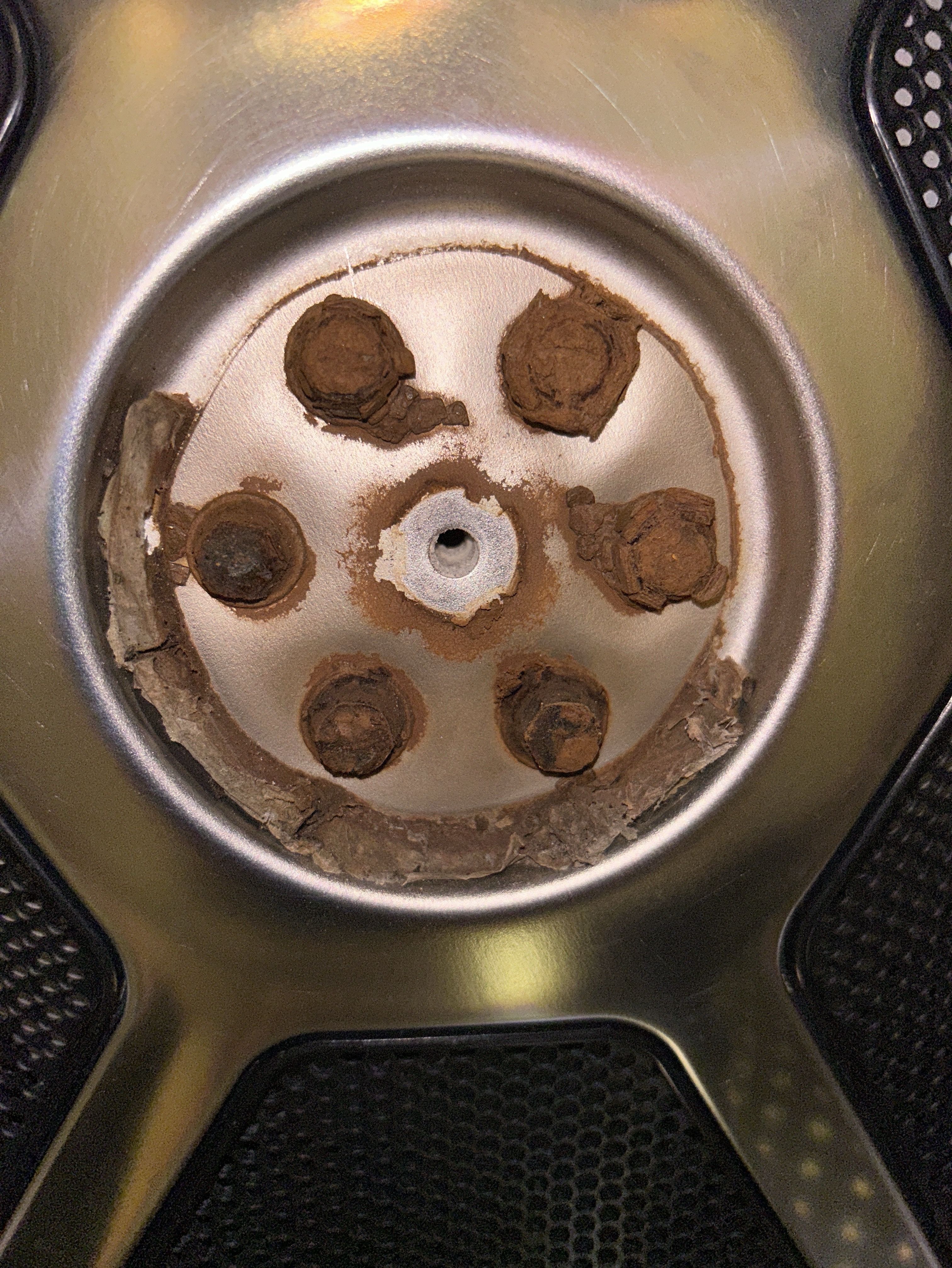 こちらのケースではドラム槽のボルトカバーを外した時点で錆びたボルト頭の破片がポロポロと落ちてきて、工具で外すことが出来ない状態になっていました。