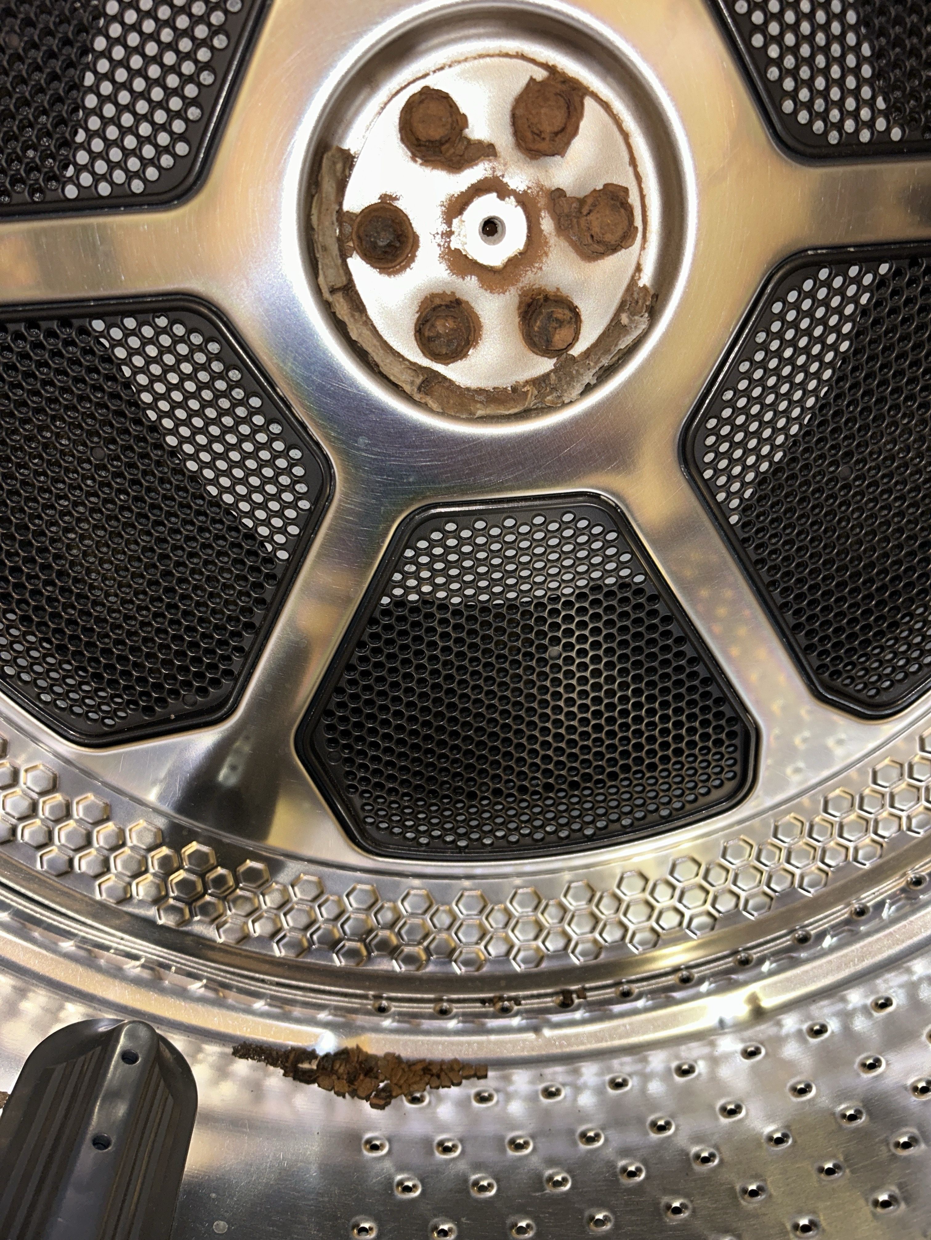 ここまでの状態になっているケースは非常にまれですが、この場合はドラム槽を外せないので取り付けた状態でのクリーニングになります。