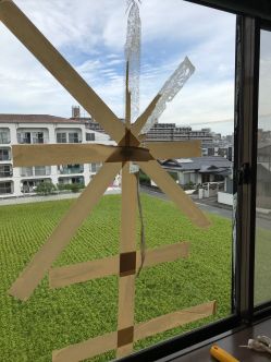 家中に貼ってしまった窓のテープ。長い時間貼っておくほど、粘着力が強くなります。