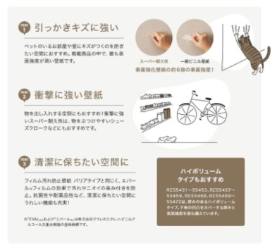 ・「スーパー耐久性」「ペット対応」などの表示がある製品