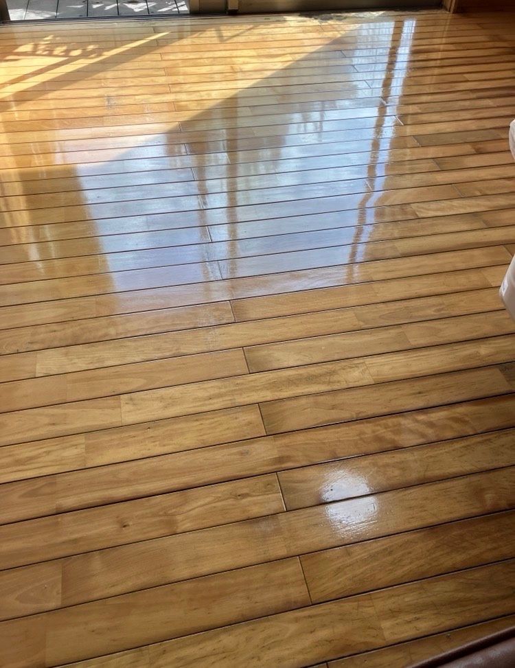 最後はフローリング用ワックスで仕上げ、ぴかぴかでつるんと綺麗な床になりました!