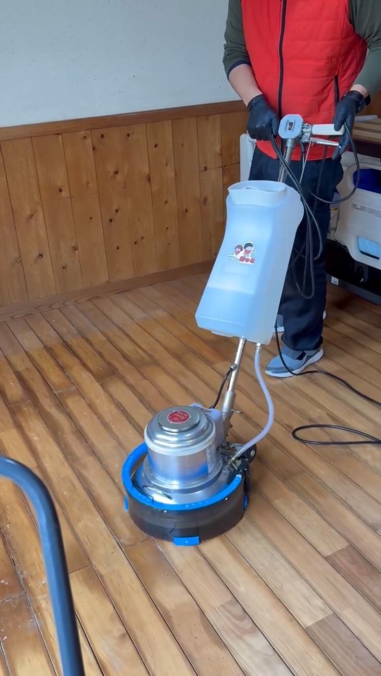 剥離したワックスの汚水とともに、汚れやゴミをバキュームでしっかり回収しました。