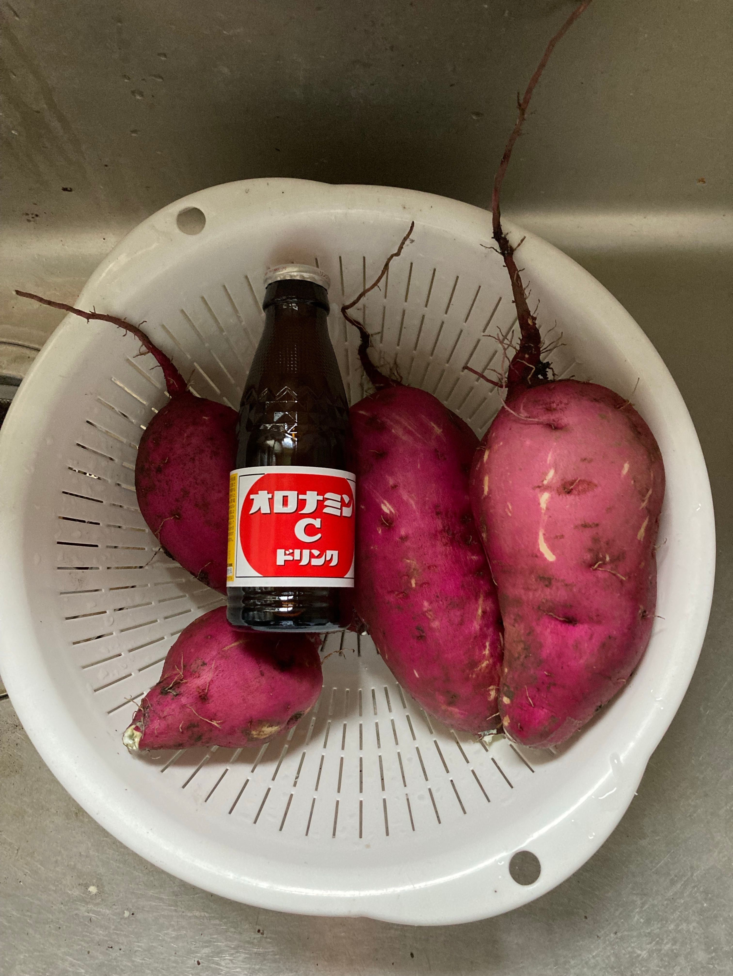 おはようございます🌞先週まで30°超えの残暑に苦しんでましたが、やっと涼しくなりました^_^さつまいも(べにはるか)収穫しました!大きさが分かるようにオロナミンC置いてみました^_^