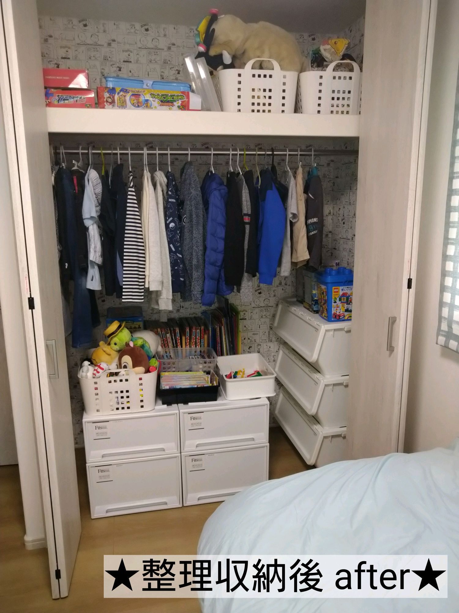 小学4年生のクローゼットですが、ご自身でもどんな物が必要で、どんな物が不要なのか判断して頂きながら、整理収納を進めてまいりました。