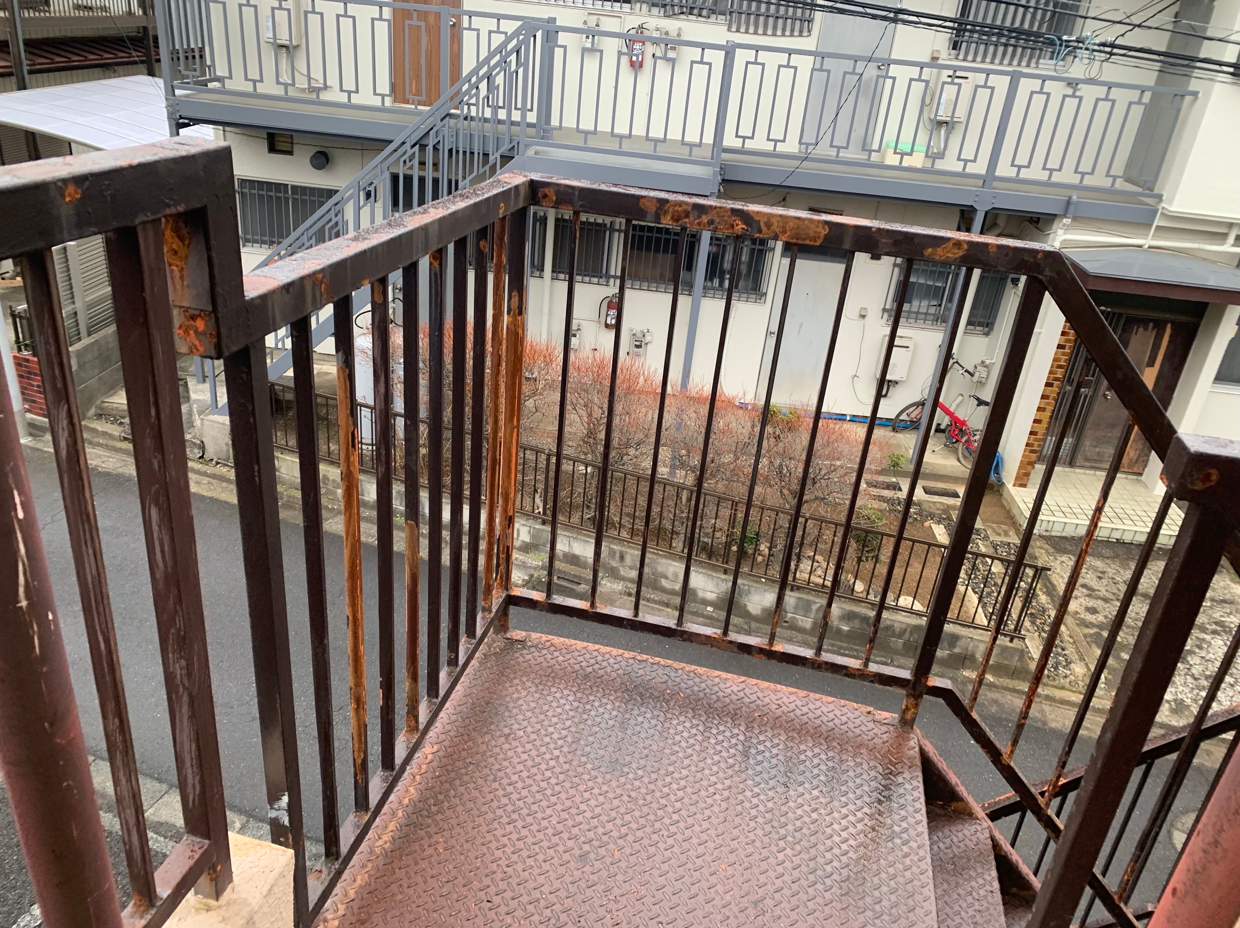 外階段ですので雨風に当たり劣化が