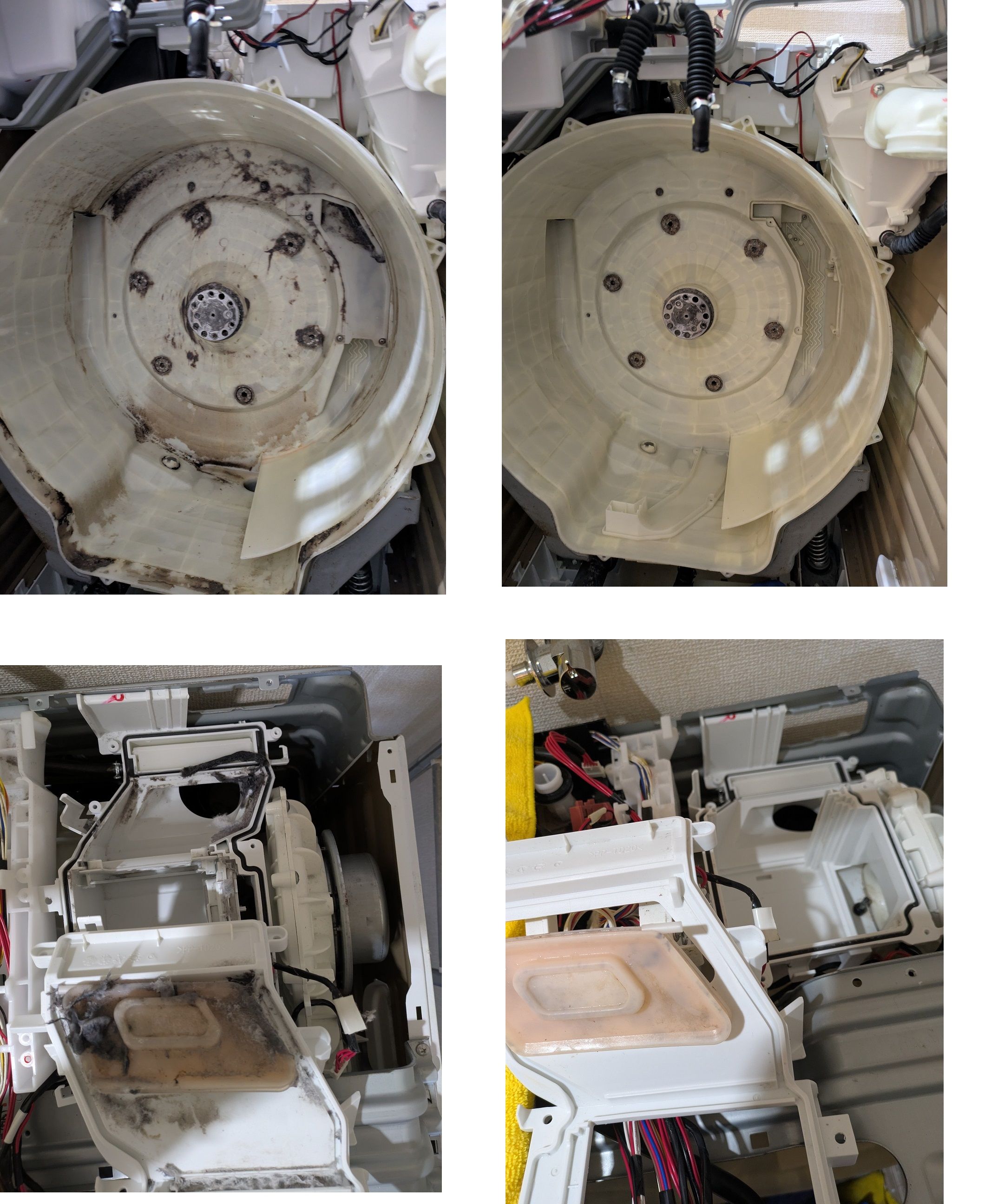 乾燥効率の低下や、洗濯槽の臭いや汚れが気になりましたら、分解での洗濯機クリーニングをお勧めいたします。
