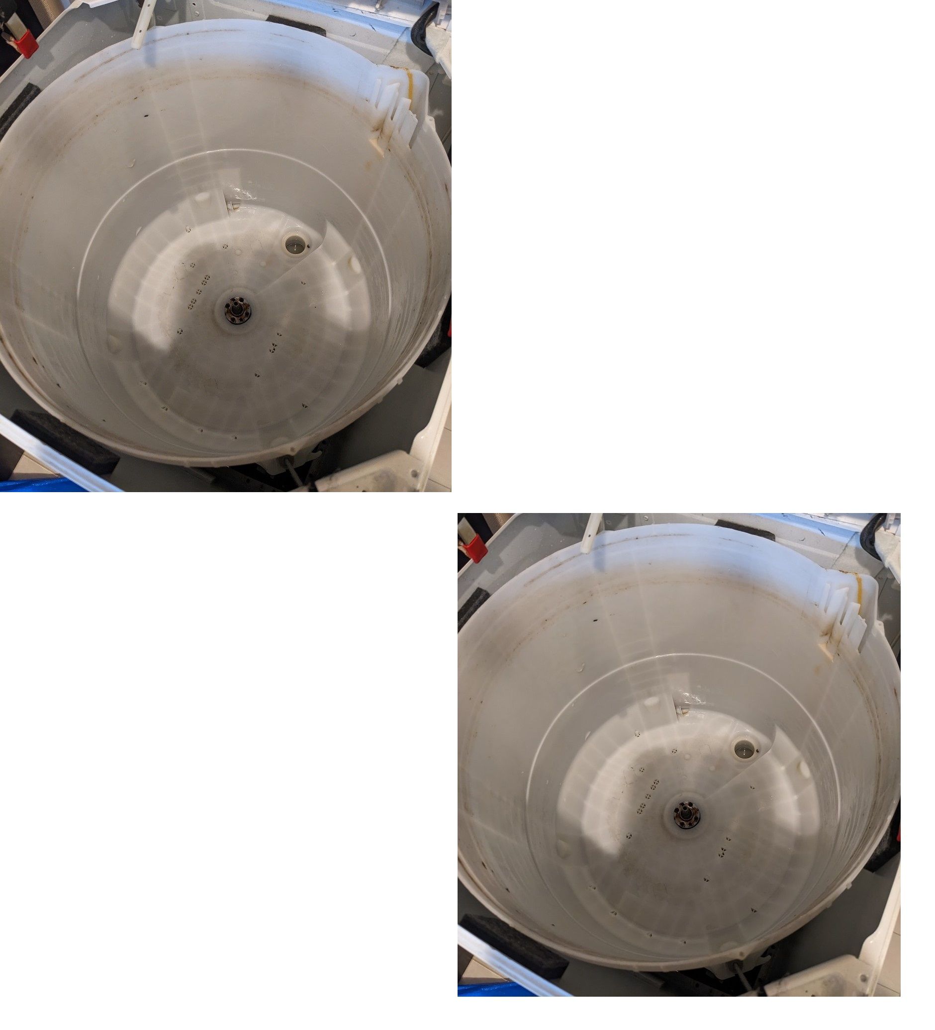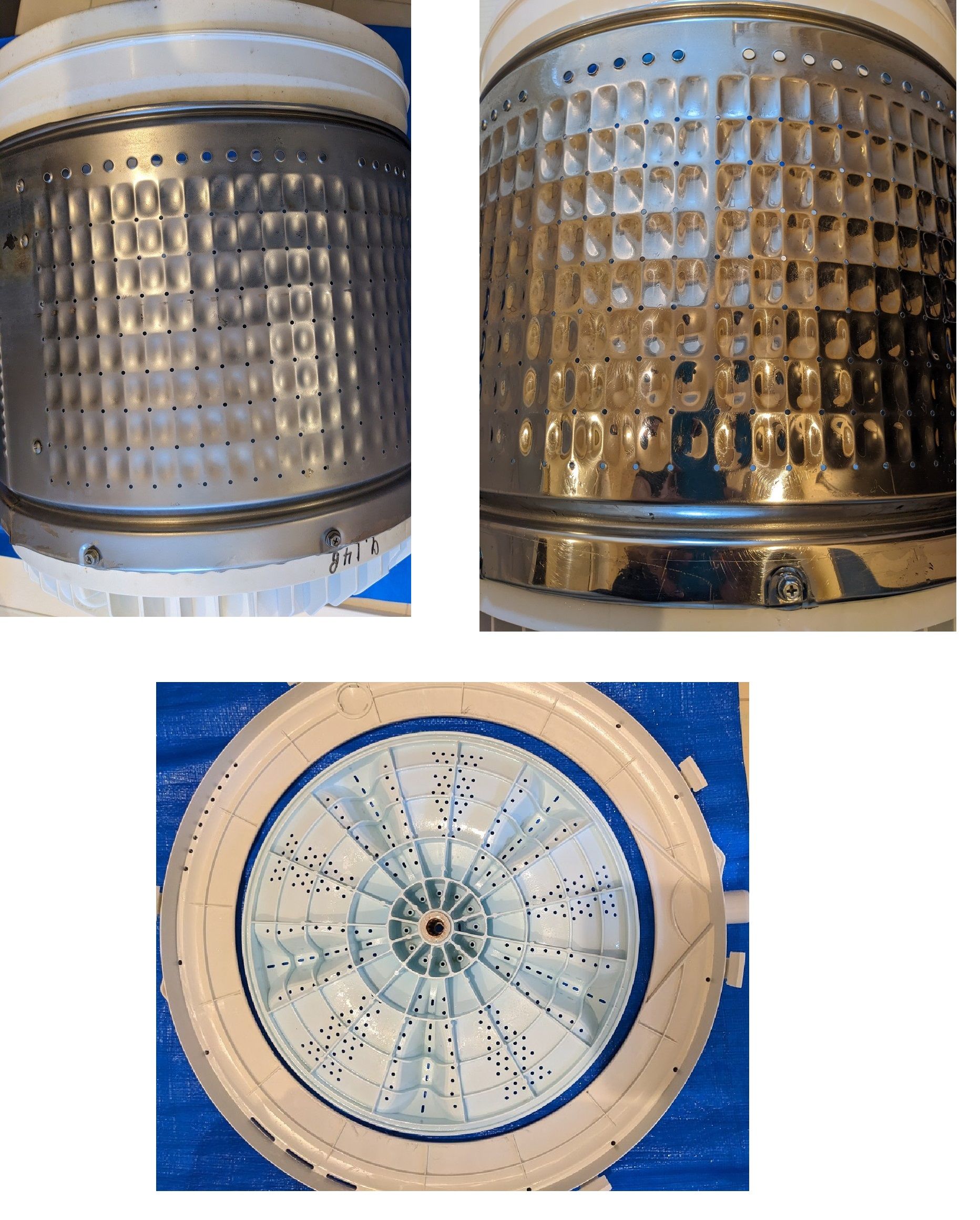 分解して洗濯槽を取り出すと全体的に洗濯槽がくすんでおりましたが、洗浄後はピカピカ✨になりました。