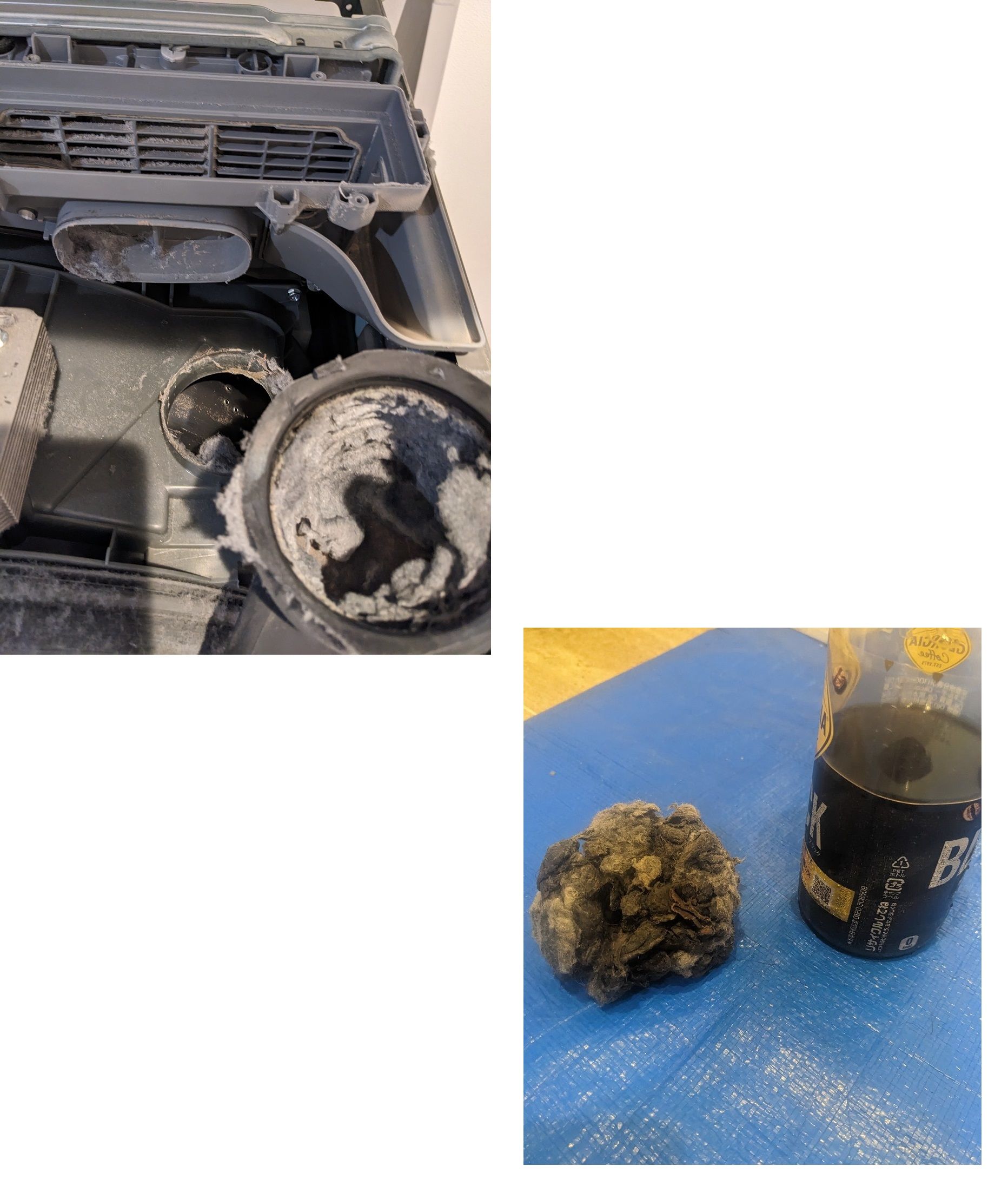 分解すると内部にホコリが溜まっておりました。(取り出したホコリの大きさは、野球ボール1個分くらい)
