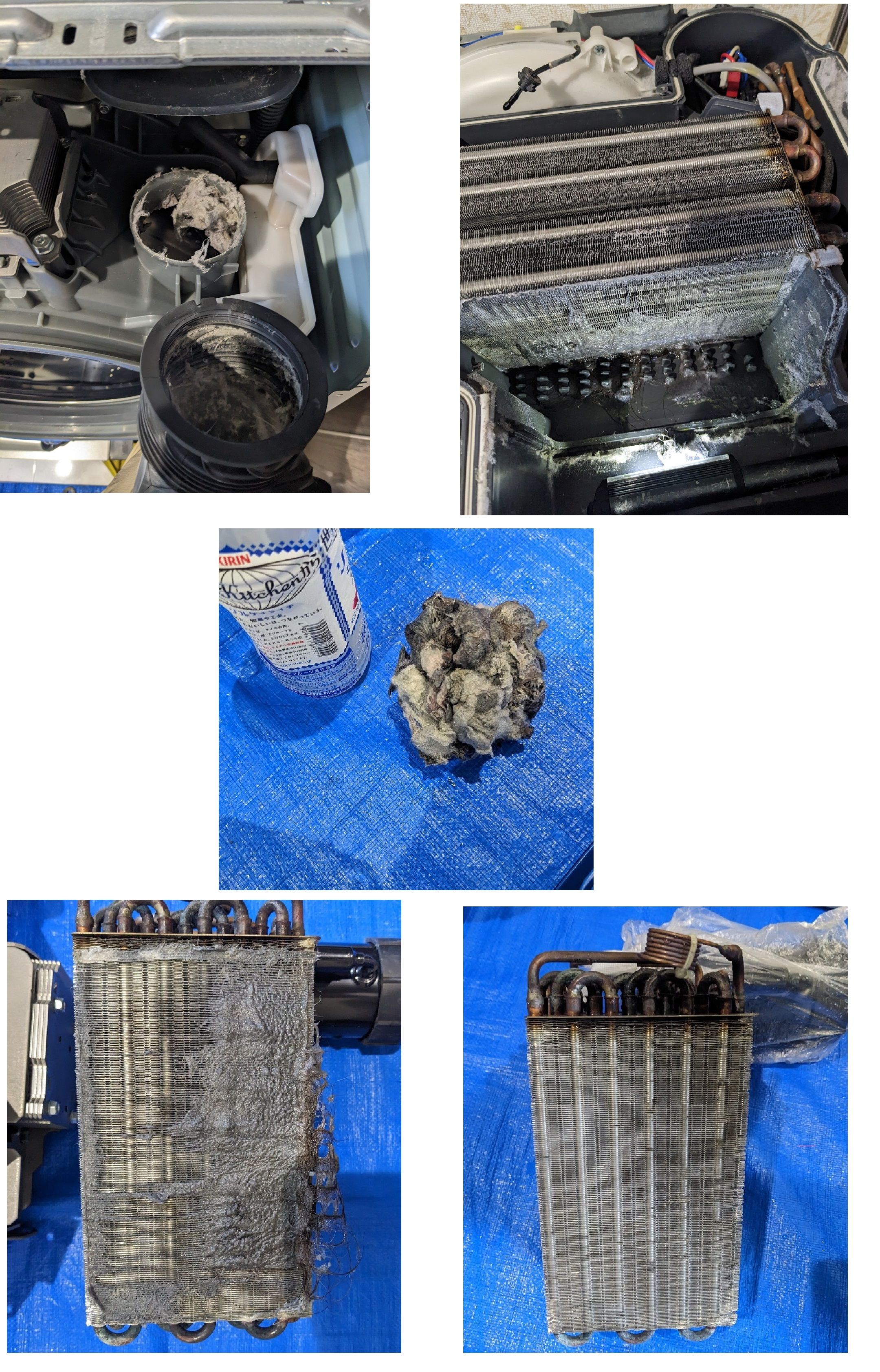 分解してみると、洗濯槽カバーやヒートポンプユニットに汚れがビッシリ付いてました。