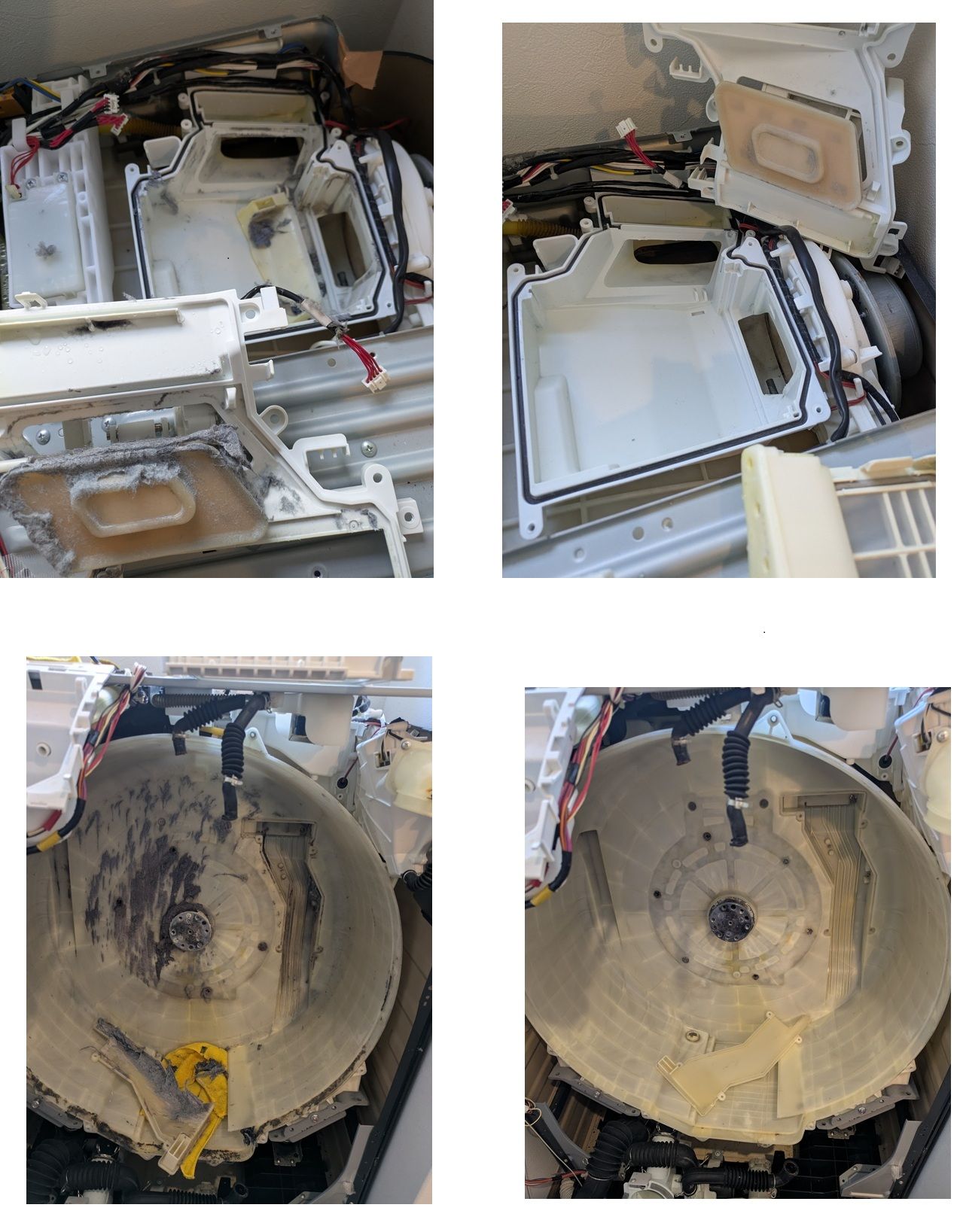 乾燥機能の低下や、内部の汚れやニオイが気になりましたら、分解での洗濯機クリーニングをお勧めいたします。