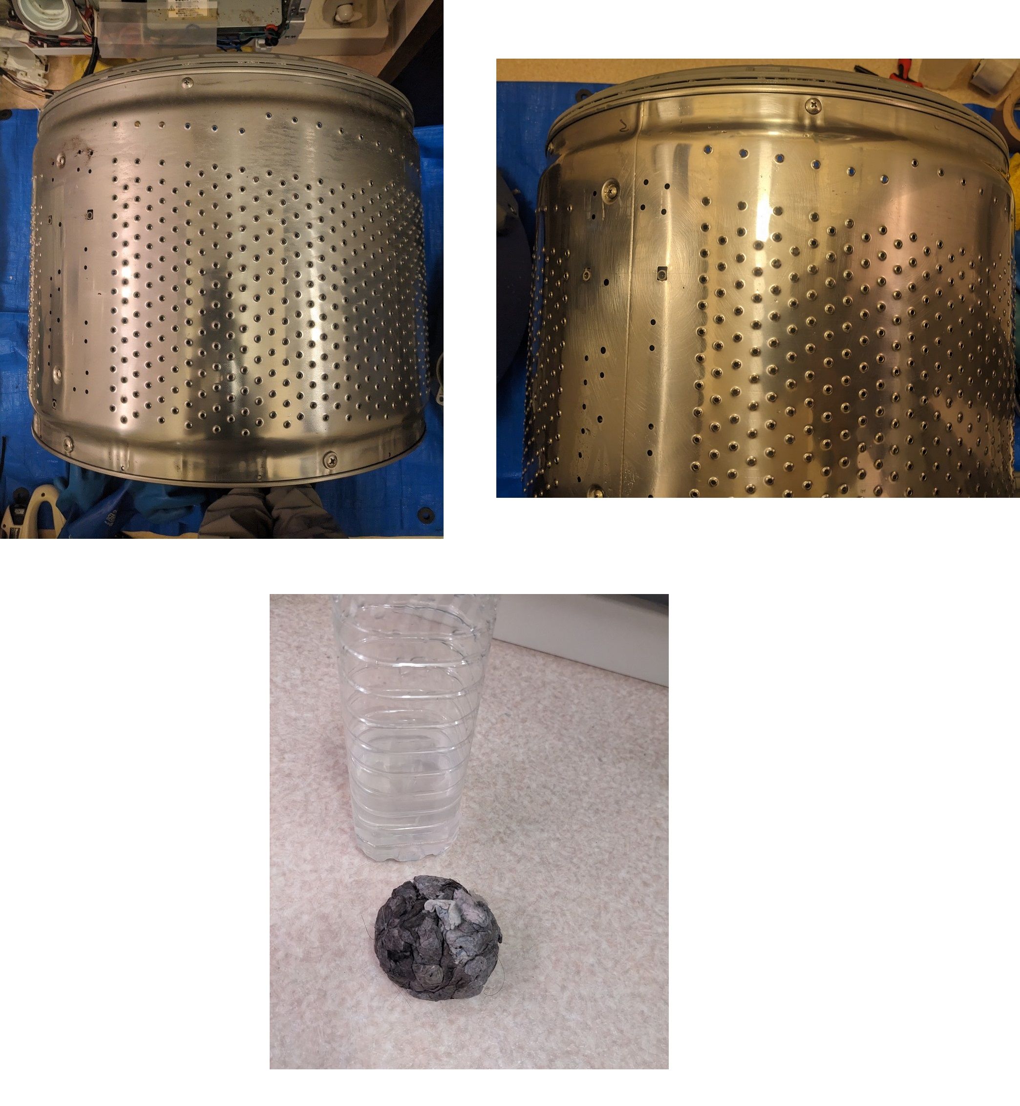 分解してみると、洗濯槽カバーにホコリが付着しておりました。取り除いたホコリをまとめると、子供の拳くらいの分量でした。