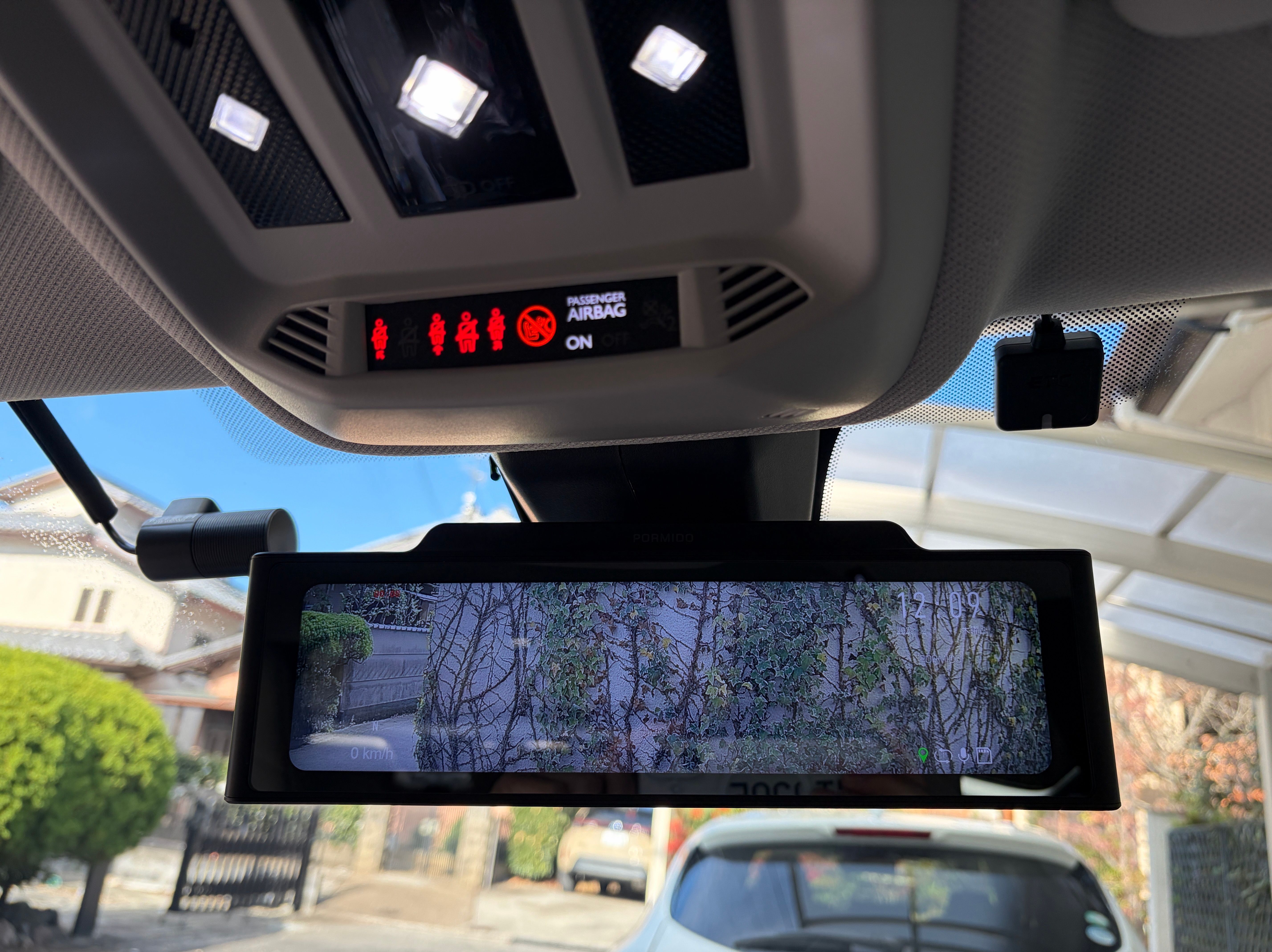 輸入車によくあるルームミラーとフロントガラスのセンサーカバーのクリアランスが狭く取り付け出来ない機種がございますので配線が上に飛び出ないPORMIDOをチョイス致しました。