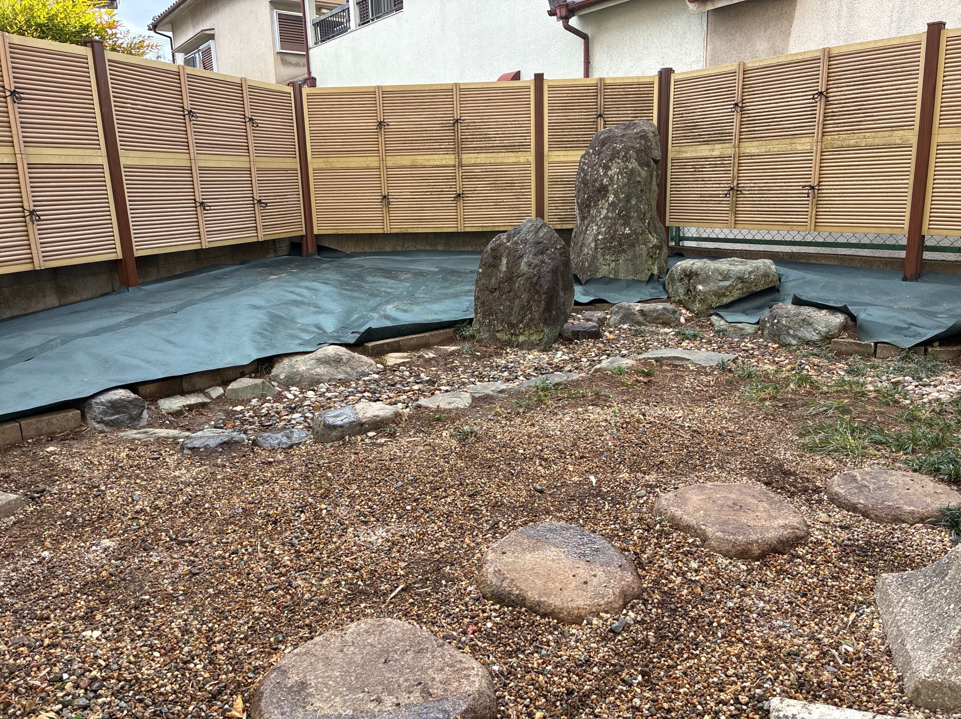 雑草対策で、防草シートの施工をして長年、雑草に悩ませれていてた、防草シート敷きをして、大変喜んで頂きました。
