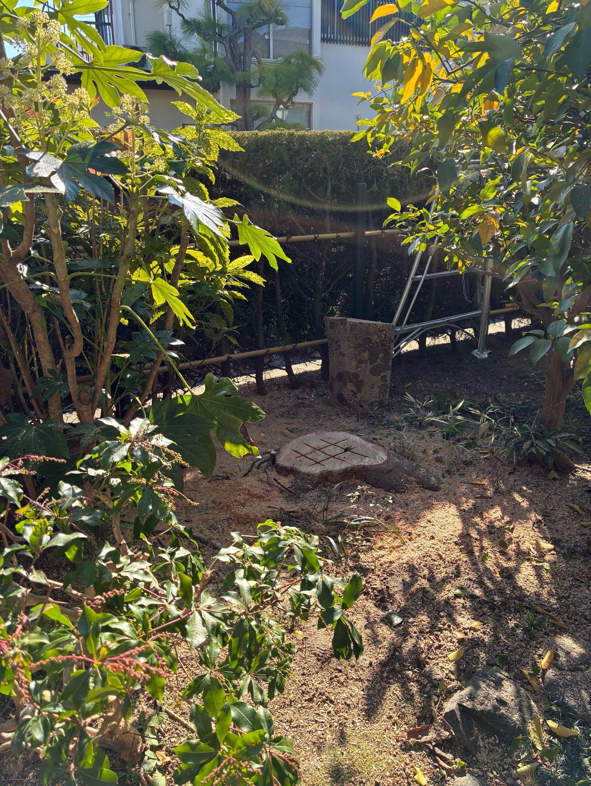 人力のみの伐採を得意としています、今回は障害物だらけの場所での伐採作業でした。