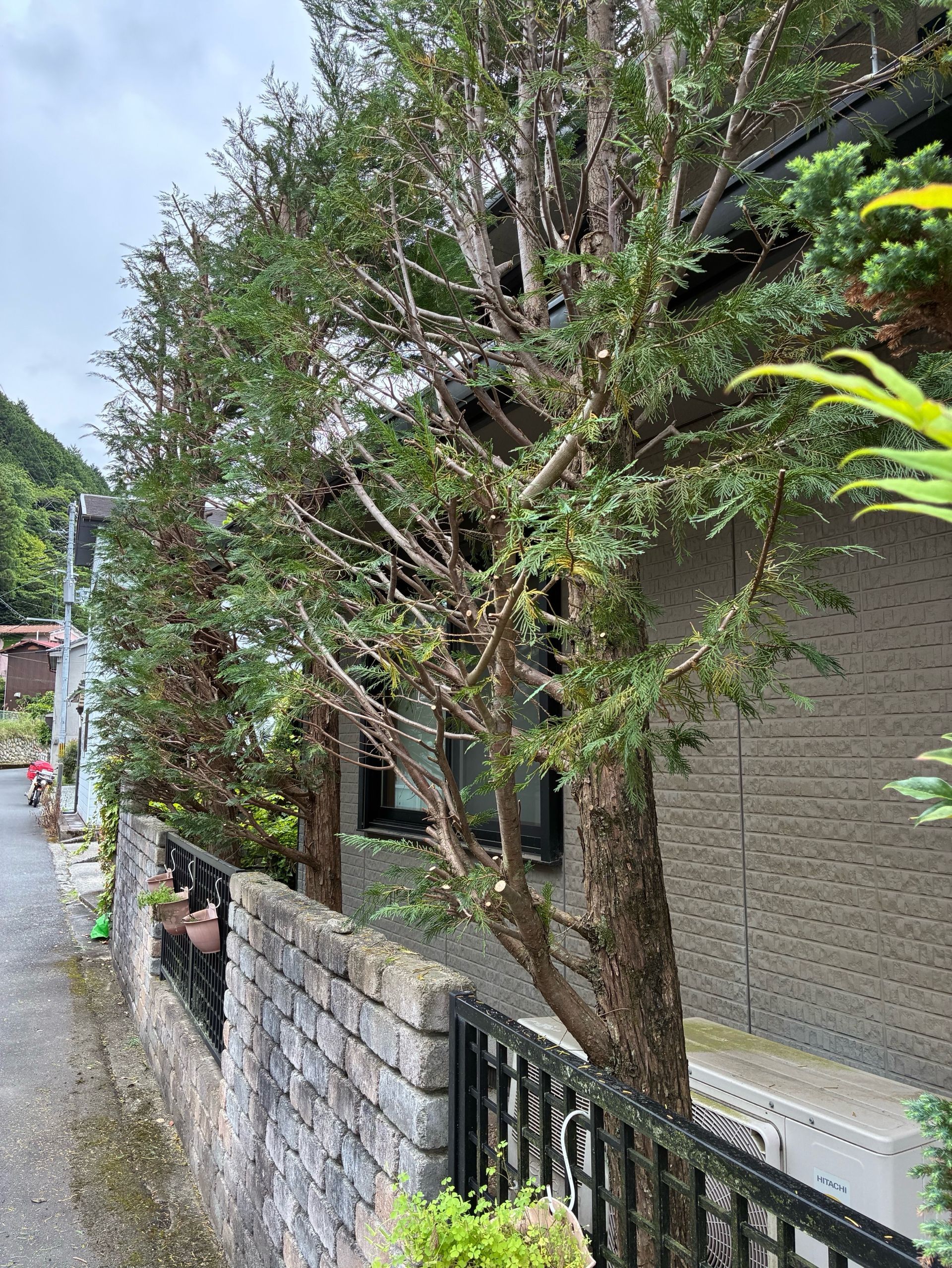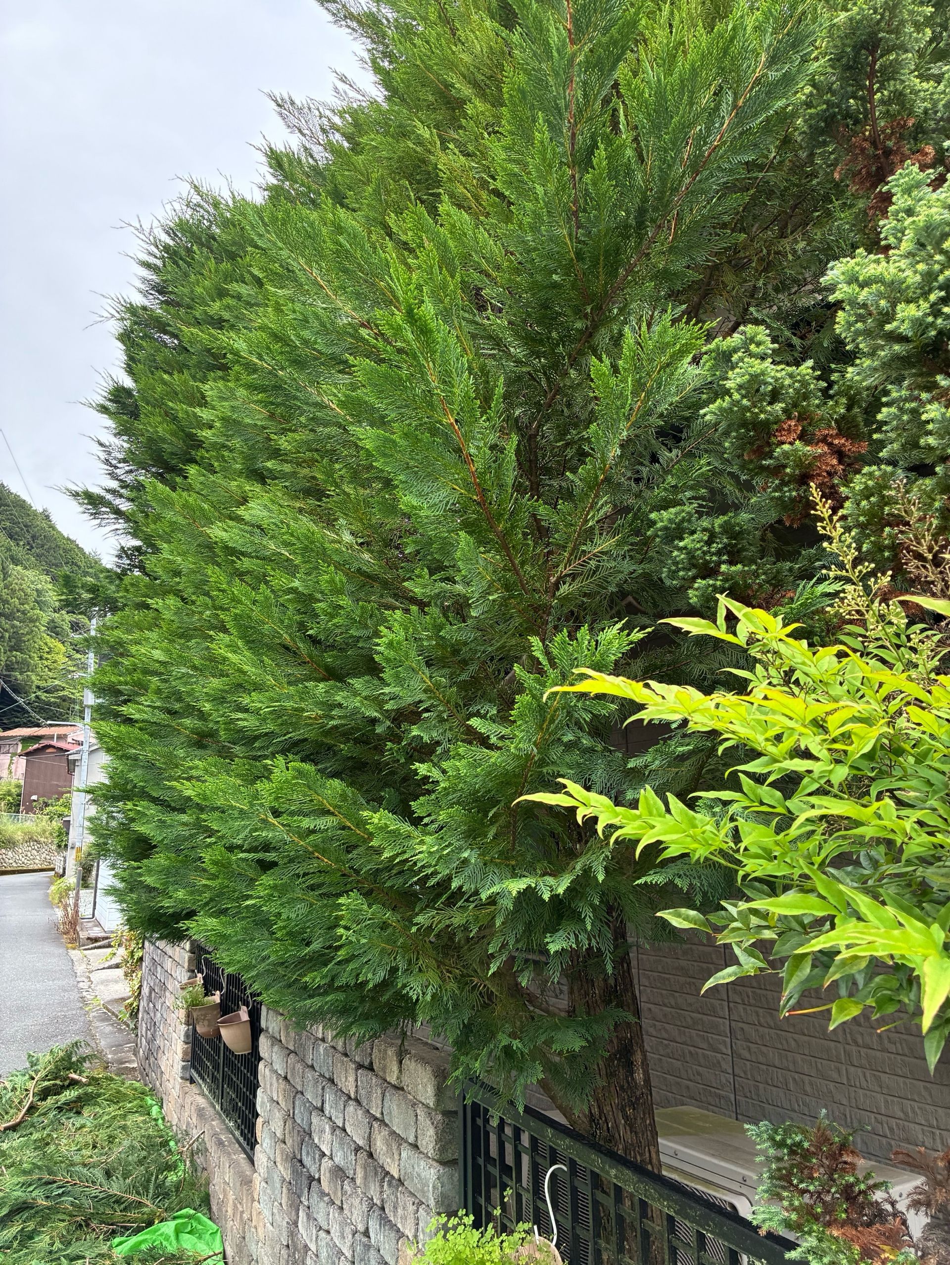 元々、刈り込みで整えて針葉樹の木、自然風剪定で整えてみました。光、風が入ってスッキリしました。