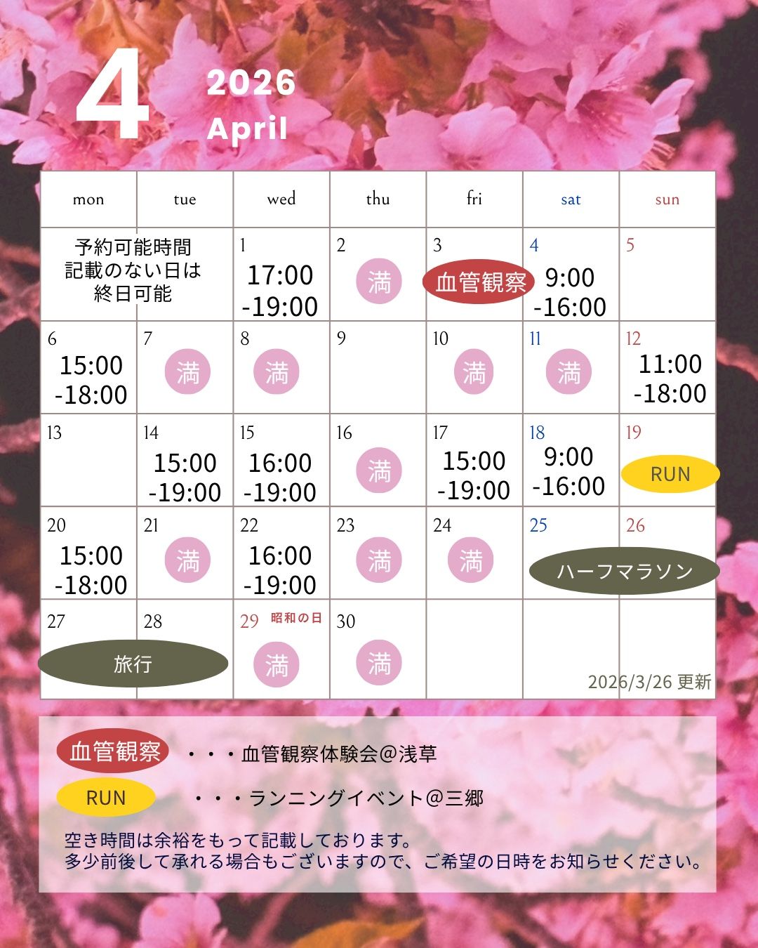 4月の空き状況のお知らせです✨